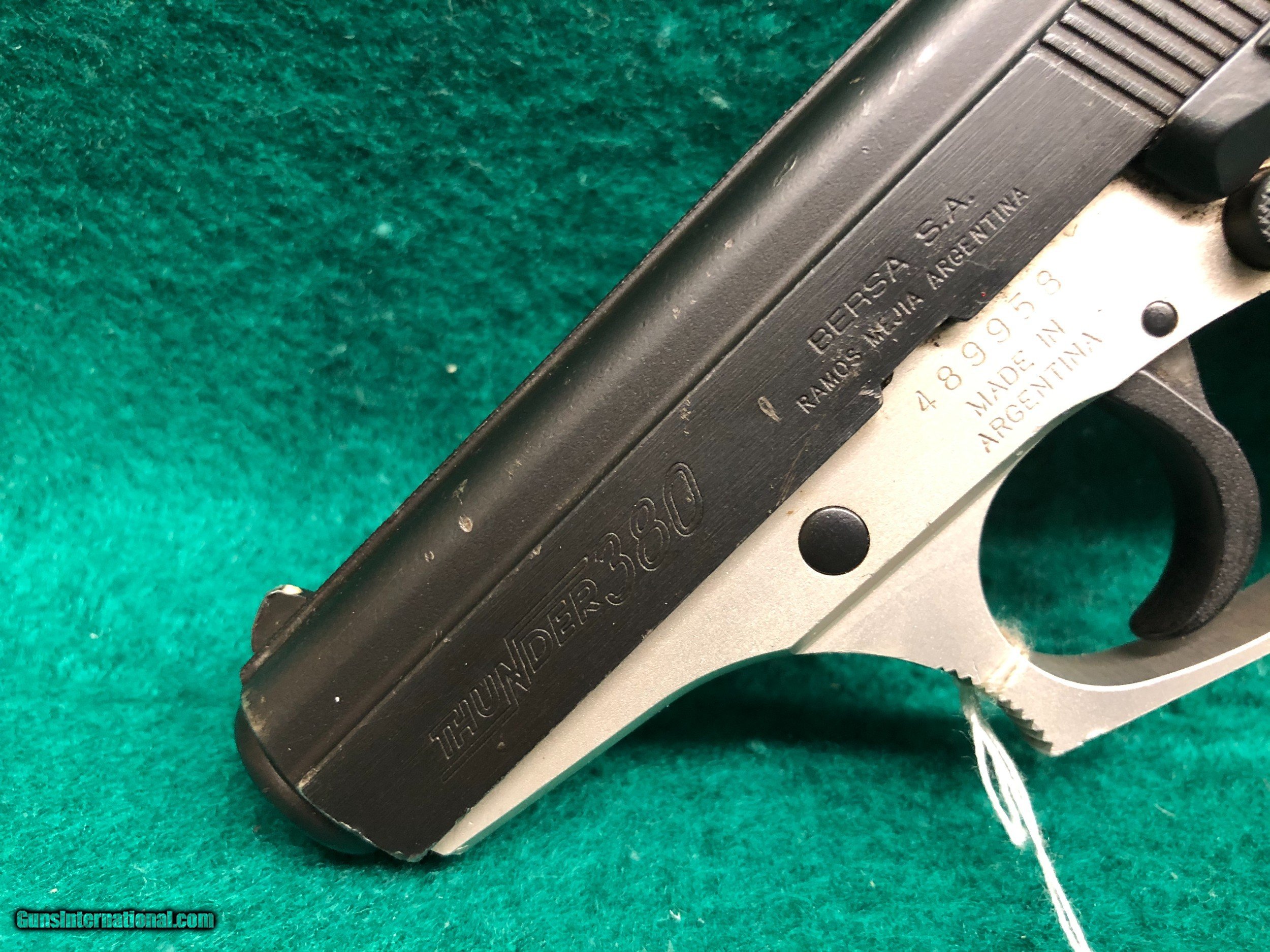 Description: BERSA THUNDER 380 380 ACP CALIBER. THIS PISTOL IS TWO TONE WITH ONE EXTENDED MAGAZINE SHOWS SOME WEAR AND IS GREAT CARRY GUN WITH MINIMAL RECOIL. NOT FOR SALE IN CA. SHIPPING IS $25.00 SOLD Handgun Caliber: .380 ACP (9x17mm Browning Short) Manufacturer: BERSA Model: THUNDER 380 Serial Number: 489958 Condition: GOOD |