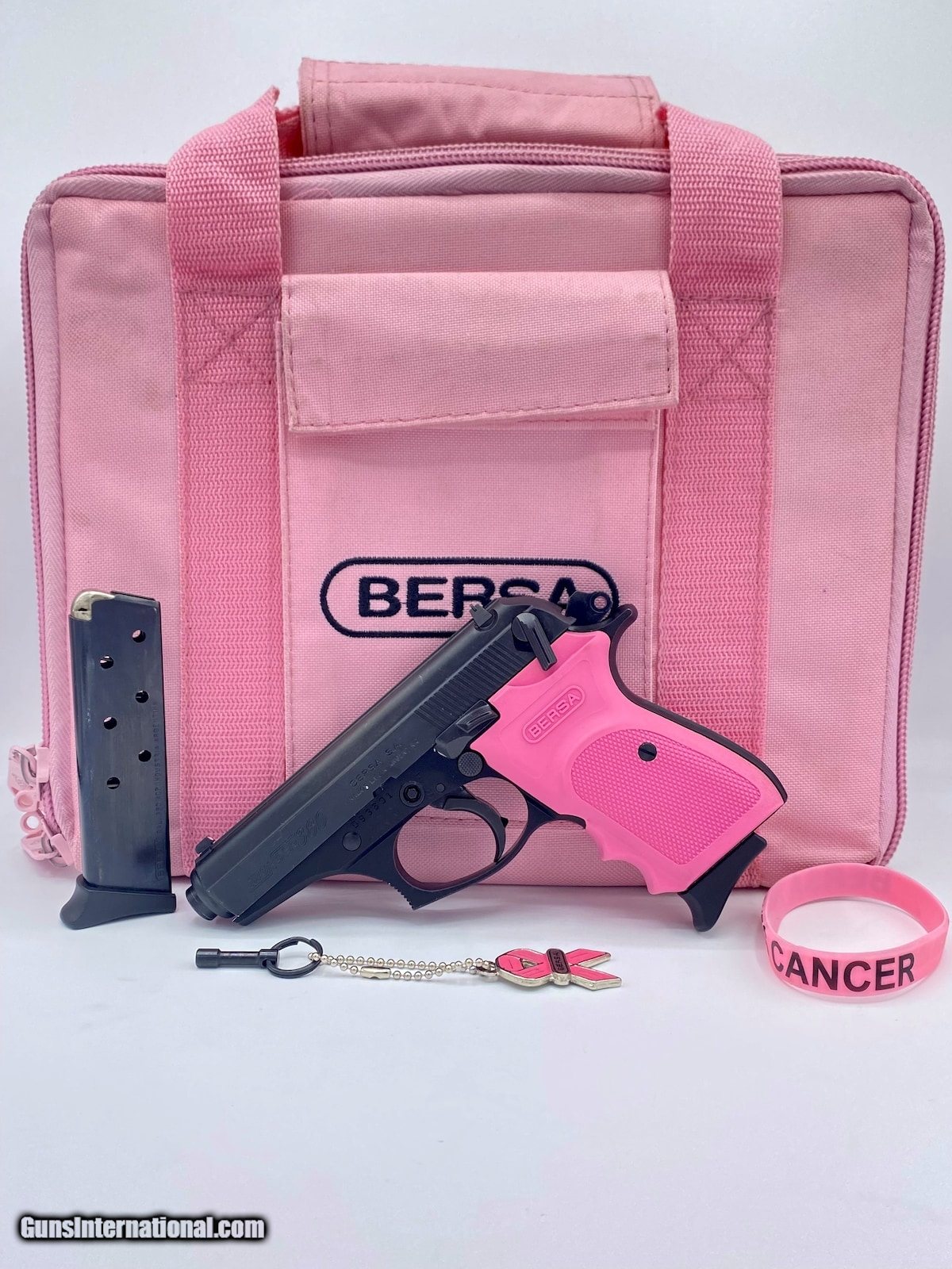 Description: Guns Listing ID: 880540 This is a preowned BERSA THUNDER 380 - 380 ACP pistol in VERY GOOD condition. Comes as pictured with minor cosmetic wear and 1 magazine. Bersa Thunder 380 Breast Cancer Awareness Features and Benefits Double action 7-round capacity 3.5\" barrel Matte finish Specifications Action: Double Metal finish: Matte Product weight: 17.9 oz. Manual Safety: Yes Activity: Shooting Barrel length (in.): 3.5 Handedness: Right Product Type: Pistol Product length (in.): 6.63 Magazine capacity: 7 Manufacturer warranty - general: Lifetime limited Caliber: .380 ACP Rifle Ammo Type: Centerfire I#0927403-SEM-GZ SOLD Manufacturer: BERSA Model: THUNDER 380 Caliber Info: .380 ACP Condition: Used - Non-Certified Barrels: 3.5 BARREL Finish: BLACK |