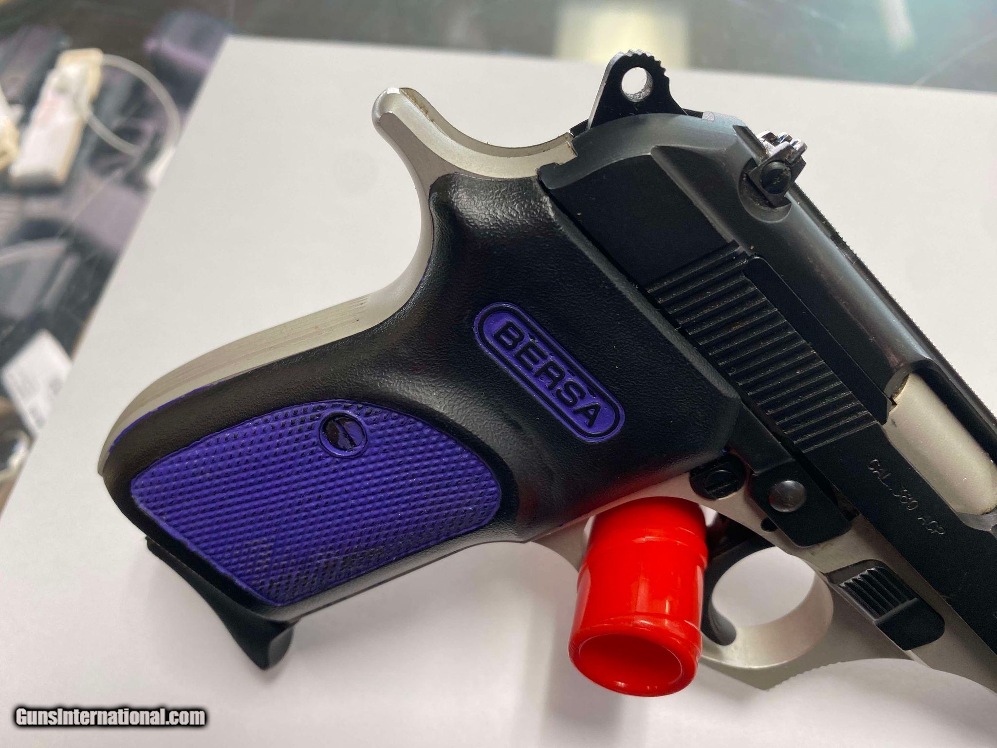 Description: Guns Listing ID: 1368866 According to our rating scale I would Rate this gun \"Good\". I have taken multiple pictures to show the condition of it. We want you to get the best impression of it. With the hopes when you get it, that it is better than what you thought. 100% working order. Some scuffs and scratches Comes with gun and three mags. The bore I would rate 7.8 out of 10. If I had to rate the firearm in condition I would say 7.8 out of 10.(Please see my pictures for a better detailed idea), Please see all Photos for a very detailed Description of condition. We rate firearms using these condition standards, for modern firearms. NEW-A gun given a grade of \"new\" looks just as it did when it left the factory and has never been sold at a retail store. PERFECT-A “perfect” gun is literally as good as new, although it may have been sold in a retail store. EXCELLENT-An “excellent” rating means the gun appears to be in perfect condition but may have had minor use. VERY GOOD-A “very good” firearm is perfect mechanically but may have minor cosmetic blemishes. GOOD-A rating of “good” indicates that the gun is in proper working condition but may show signs of wear. FAIR-A “fair” firearm may or may not be in safe working order. It has not been test fired, only visually inspected. It may need repair or maintenance. UNRATED-Unrated condition means this firearm has not been test fired, it may function perfectly or it may be in need of repair. Cosmetically it may be in very good to fair condition. You will need to look at the pictures and ask questions SOLD Manufacturer: BERSA Model: thunder 380 Caliber Info: .380 ACP Condition: Used - Non-Certified Barrels: 3.5 BARREL Finish: PURPLE |