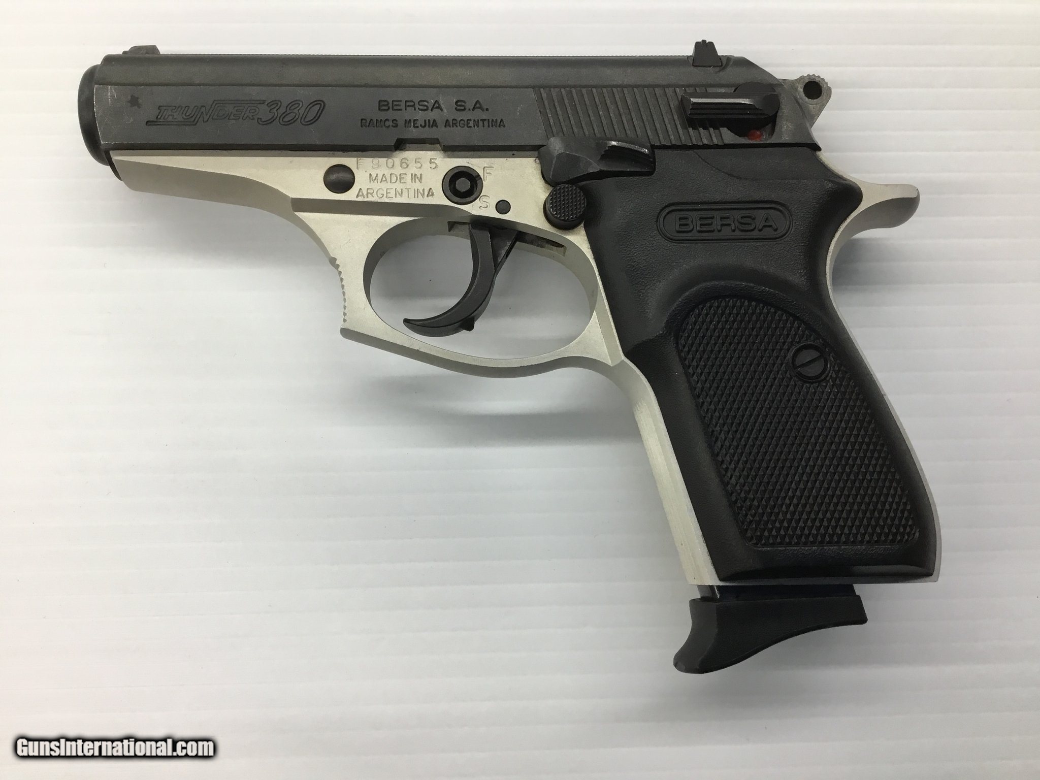 Description: Guns Listing ID: 465515 Bersa Thunder 380 with 7 round magazine SOLD Manufacturer: BERSA Model: THUNDER .380 Caliber Info: .380 ACP Condition: Used - Non-Certified Barrels: 3 BARREL Finish: black matte |