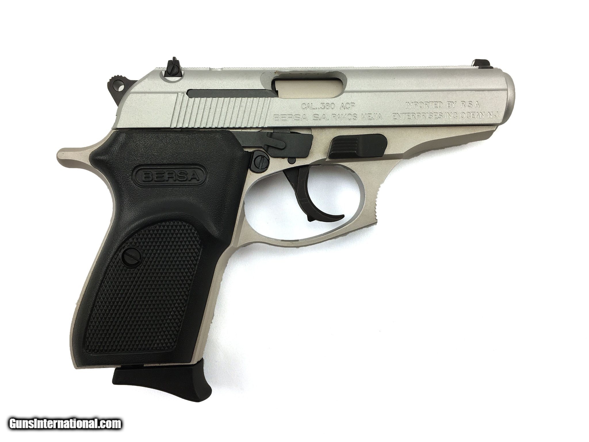 Description: Guns Listing ID: 17148 The Bersa Thunder is a semi-automatic pistol. It features a lightweight aluminum alloy frame steel slide with rear cocking serrations 3.5 barrel micro-polished bore with deep rifling integral blade front and notched-bar dovetailed rear three-dot sights combat style trigger guard checkered polymer grips with long rearward tang to prevent hammer and slide bite magazine with extended finger rest decocker and integral locking system. Some models additionally feature an automatic firing pin block. Details Bersa T380NKL8 Thunder 380 SingleDouble 380 Automatic Colt Pistol (ACP) 3.5 81 Black Polymer Grip Nickel SOLD Manufacturer: BERSA Model: THUNDER 380 Caliber Info: .380 ACP Condition: new Barrels: 3.5 BARREL Action: DOUBLE ACTION Finish: NICKEL Weight: 1.3 LBS. |