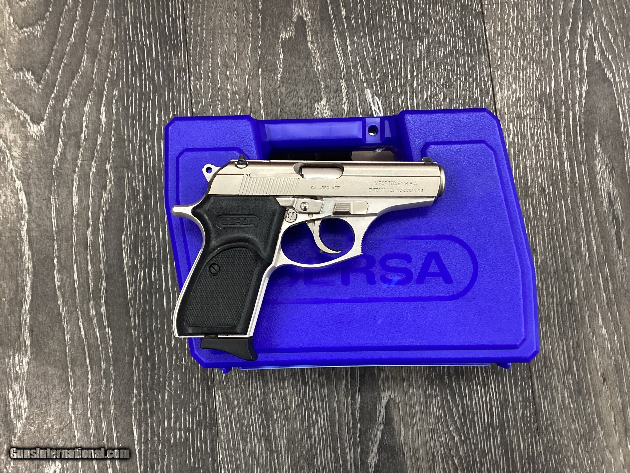 Description: Guns Listing ID: 496318 BERSA MODEL THUNDER 380 SEMI AUTO PISTOL, NICKEL FINISH, 8 ROUNDS, 3.5 INCH BARREL, .380 ACP, COMES WITH FACTORY HARD CASE. SOLD Manufacturer: BERSA Model: THUNDER .380 Caliber Info: .380 ACP Condition: Used - Non-Certified Barrels: 3.5 BARREL Action: SEMI AUTOMATIC Finish: nickel |