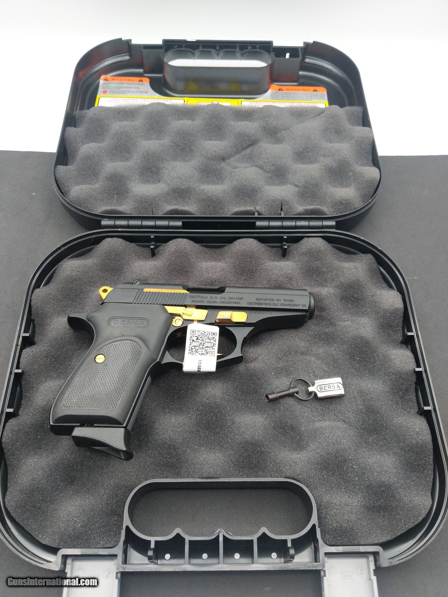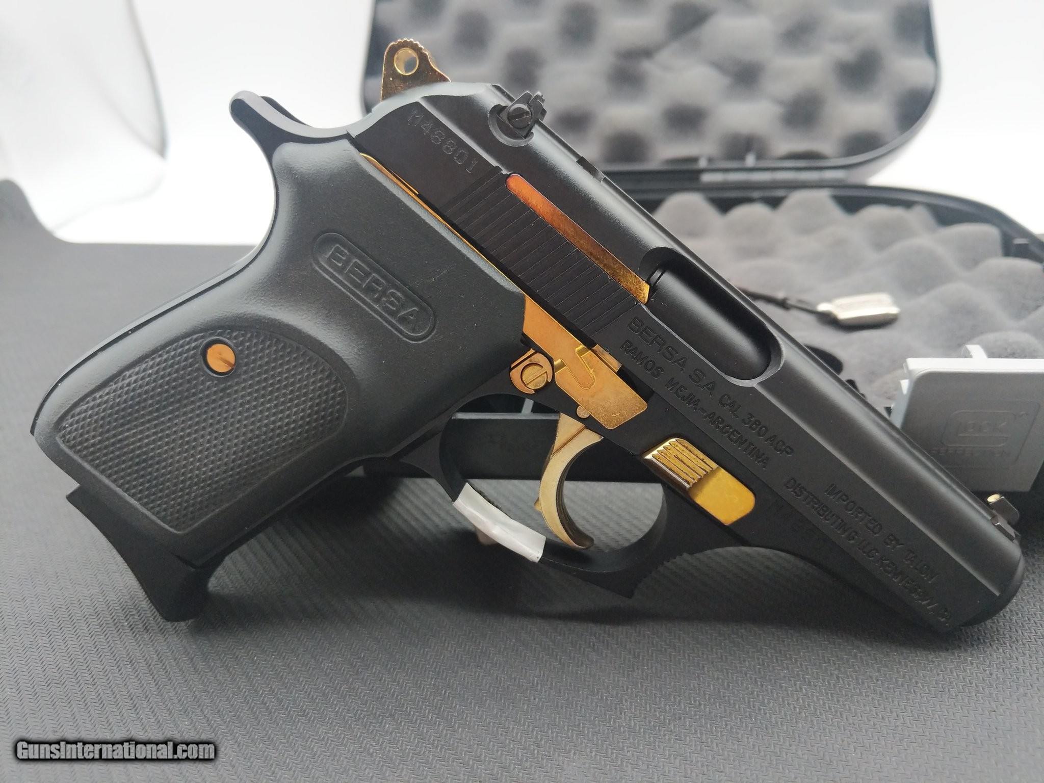 Description: Guns Listing ID: 570762 Very good condition Bersa Thunder 380! Perfect affordable concealed carry pistol in hard case with one 8rd magazine. Nice addition to any collection. SOLD Manufacturer: BERSA Model: Thunder 380 Caliber Info: .380 ACP Condition: Used - Non-Certified Barrels: 3.5" BARREL Action: SEMI AUTOMATIC Finish: black-and-gold |
