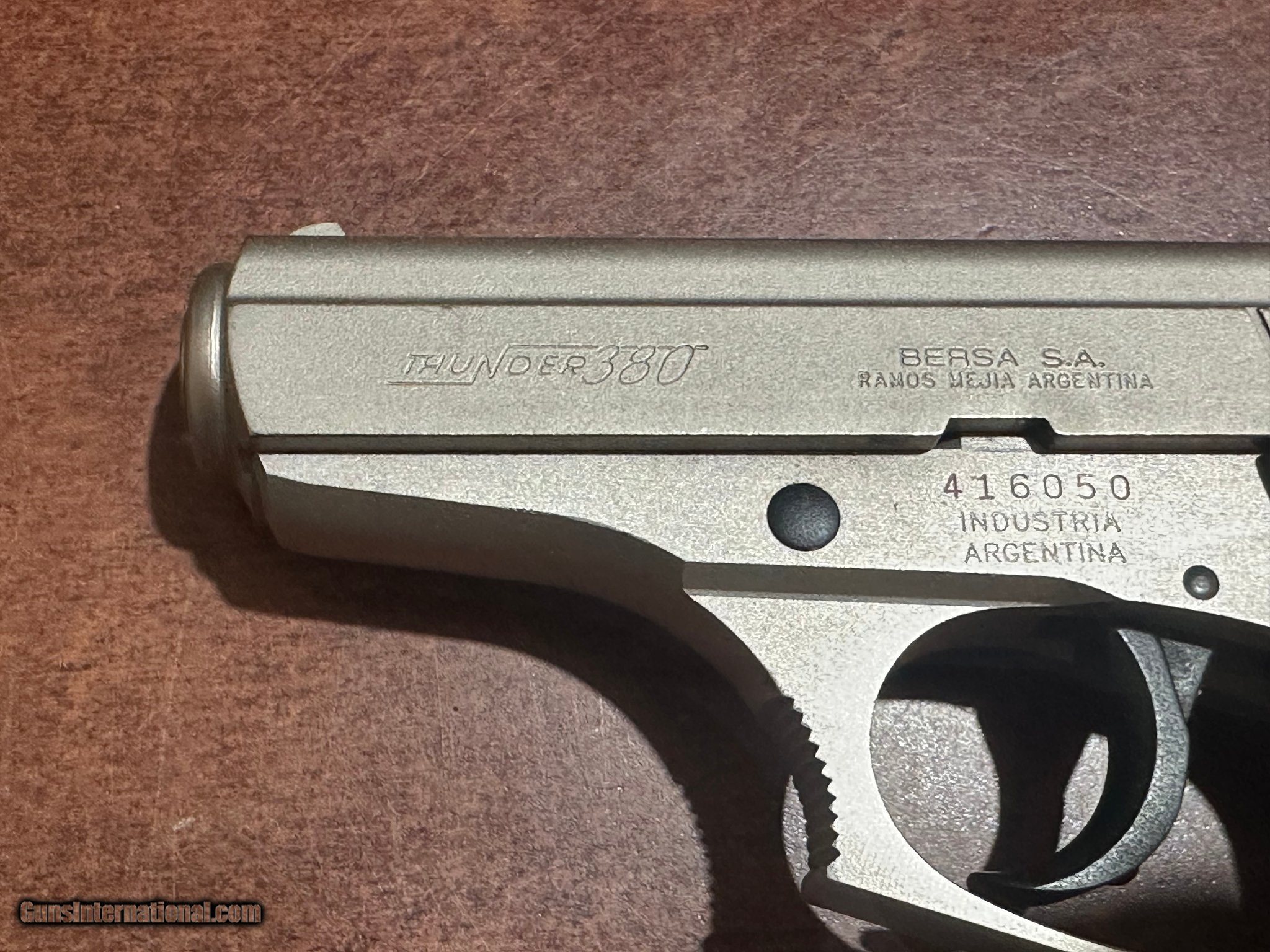 Description: Guns Listing ID: 609226 You are looking at a used Bersa thunder chambered in 380 acp. This pistol comes with (3) OEM magazines. One is blued two are nickel. This pistol has not been shot much. It does have a l dirty place on the frame (see the back of the grip part of the frame) that could be cleaned up. It appears to be some type of blue dye/paint. There does not appear to be any dents, dings, or scratches on this pistol. Manufacturer: BERSA Model: THUNDER .380 Caliber Info: .380 ACP Condition: Used - Non-Certified Barrels: 3.5" BARREL Action: SEMI AUTOMATIC Finish: BLACK AND NICKEL Price: $299.99 Contact Seller |