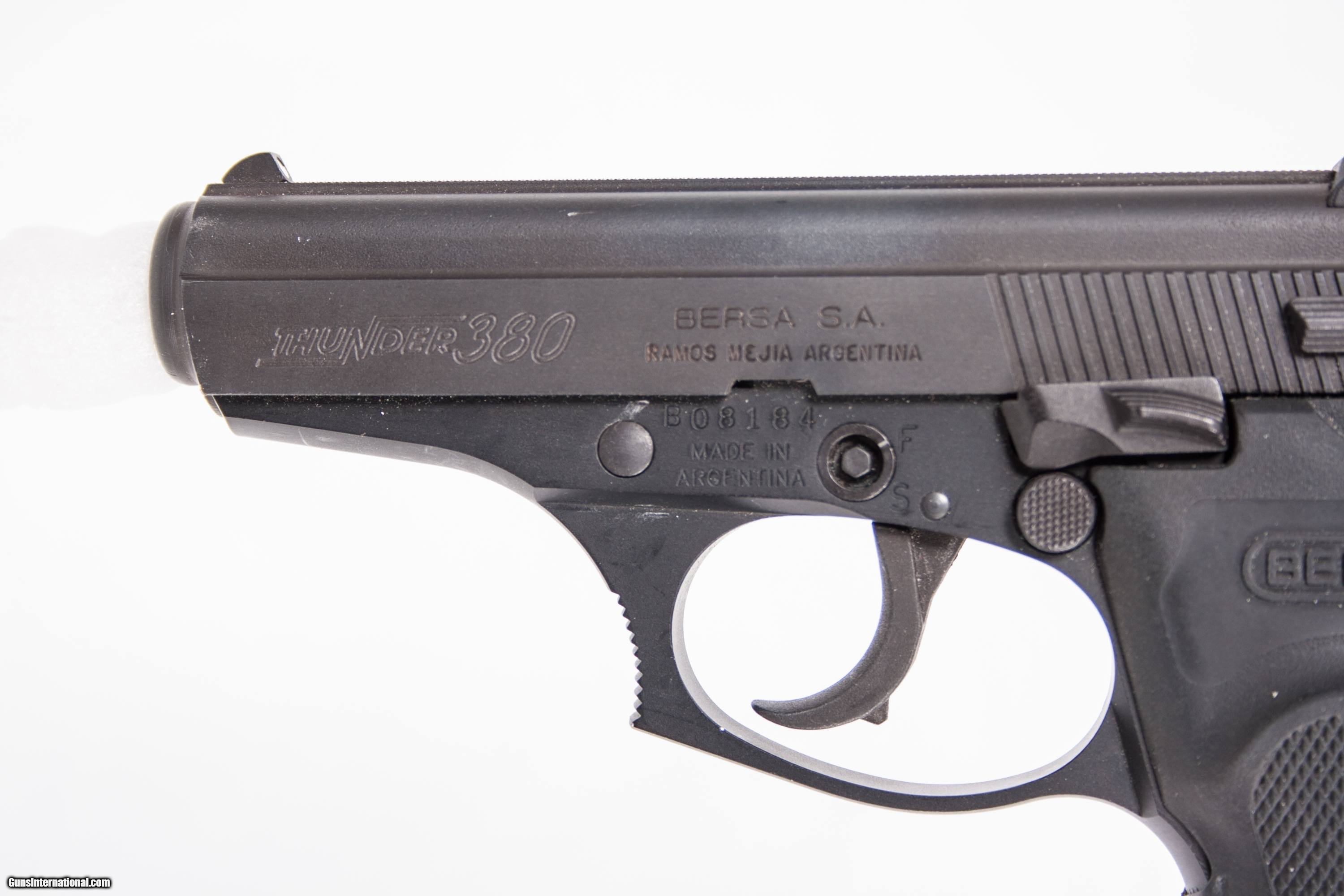 Bersa Thunder chambered in 380 acp with a 3 1/2 inch barrel bright bore good grooves the box and 1 extra magazine. This gun is in excellent condition and is covered by Dury's Lifetime Warranty.