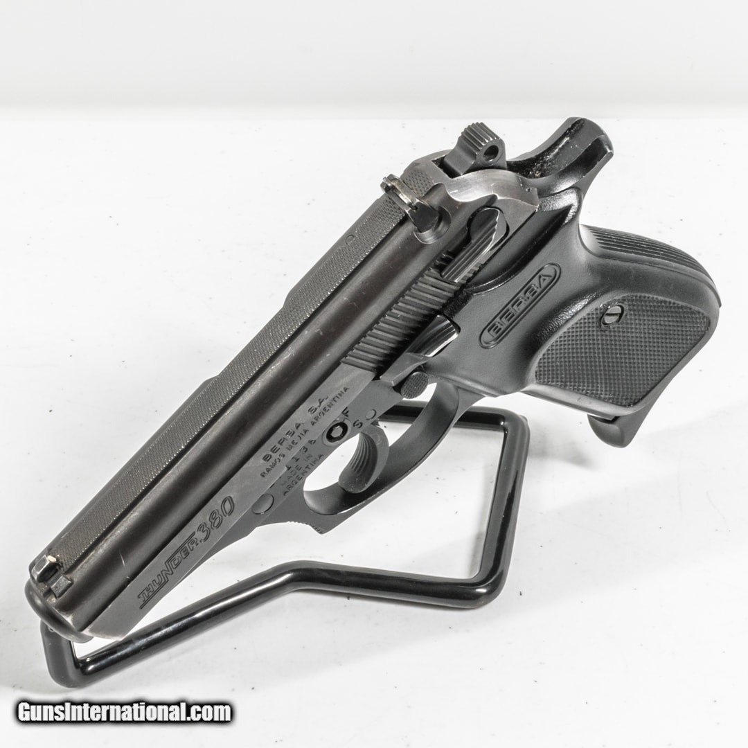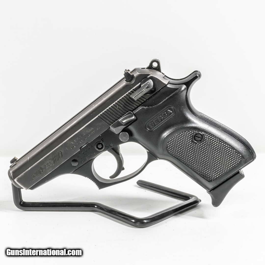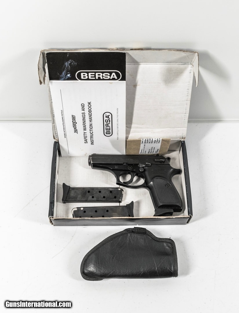 Description: Guns Listing ID: 872538 Manufacturer: Bersa Model: Thunder Condition: Good Caliber: .380 ACP Action: DA/SA Barrel Length: 3.62\" Capacity: 8+1 Features: Matte black finish, decoker only. Inventory: Includes (3) 8-rd mags, original box, holster. -Please be aware that we have not test fired this gun. Unless otherwise stated, expect this firearm to fire and function safely. -All sales are final. Any discrepancies between the gun and our description should be communicated to us prior to the transfer. -Returns will not be accepted after the transfer process has been submitted or completed. SOLD Manufacturer: BERSA Model: THUNDER Caliber Info: .380 ACP Condition: Used - Non-Certified Barrels: 3.62 BARREL Finish: BLACK |
