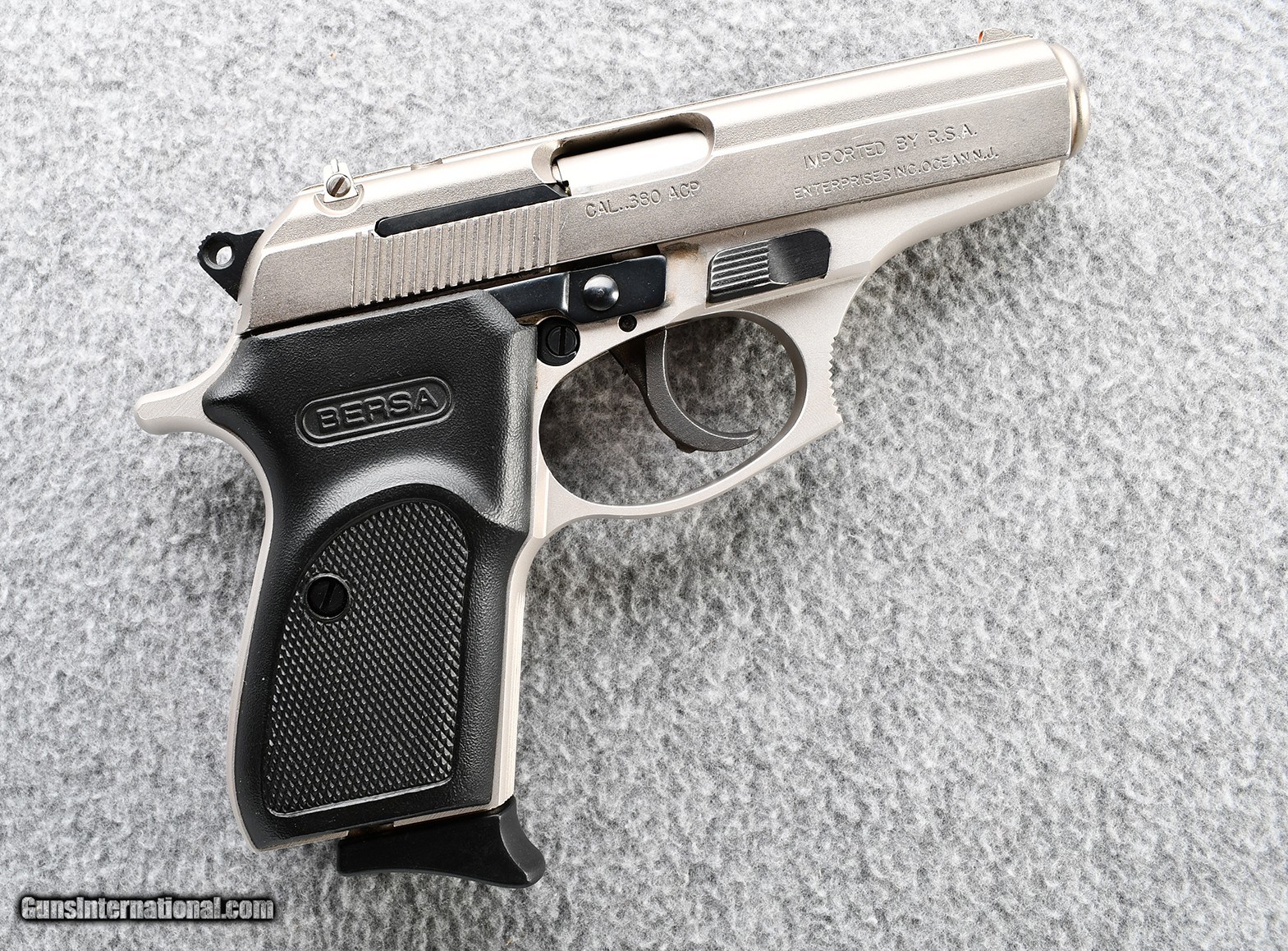 Description: Very good condition wit decocker, combat style trigger, checkered polymer grips, extended slide release. .380 ACP SOLD Chambers: .380 ACP in a seven round detachable magazine Metal Condition: Very good Bore Condition: Very good Barrels: 3.5 Triggers: DA/SA Weight: 18oz Sights: Three dot system Item Location: Grand Junction, CO |