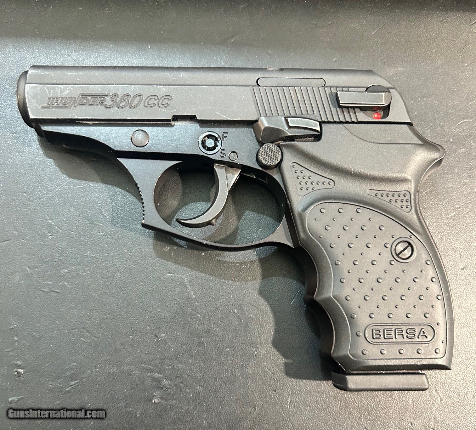 Description: Guns Listing ID: 543064 The Thunder 380, black, 380acp has a light aluminum alloy frame that reduces weight for easier carry but still has enough mass to help tame recoil. The magazines are designed with of grip, so that all fingers of the firing hand are accommodated. Slim profile and light weight construction perfect for concealed carry. See photos for condition. SOLD Manufacturer: BERSA Model: Thunder 380 CC Caliber Info: .380 ACP Condition: Used - Non-Certified Barrels: 3.5 BARREL Action: SEMI AUTOMATIC Finish: black |