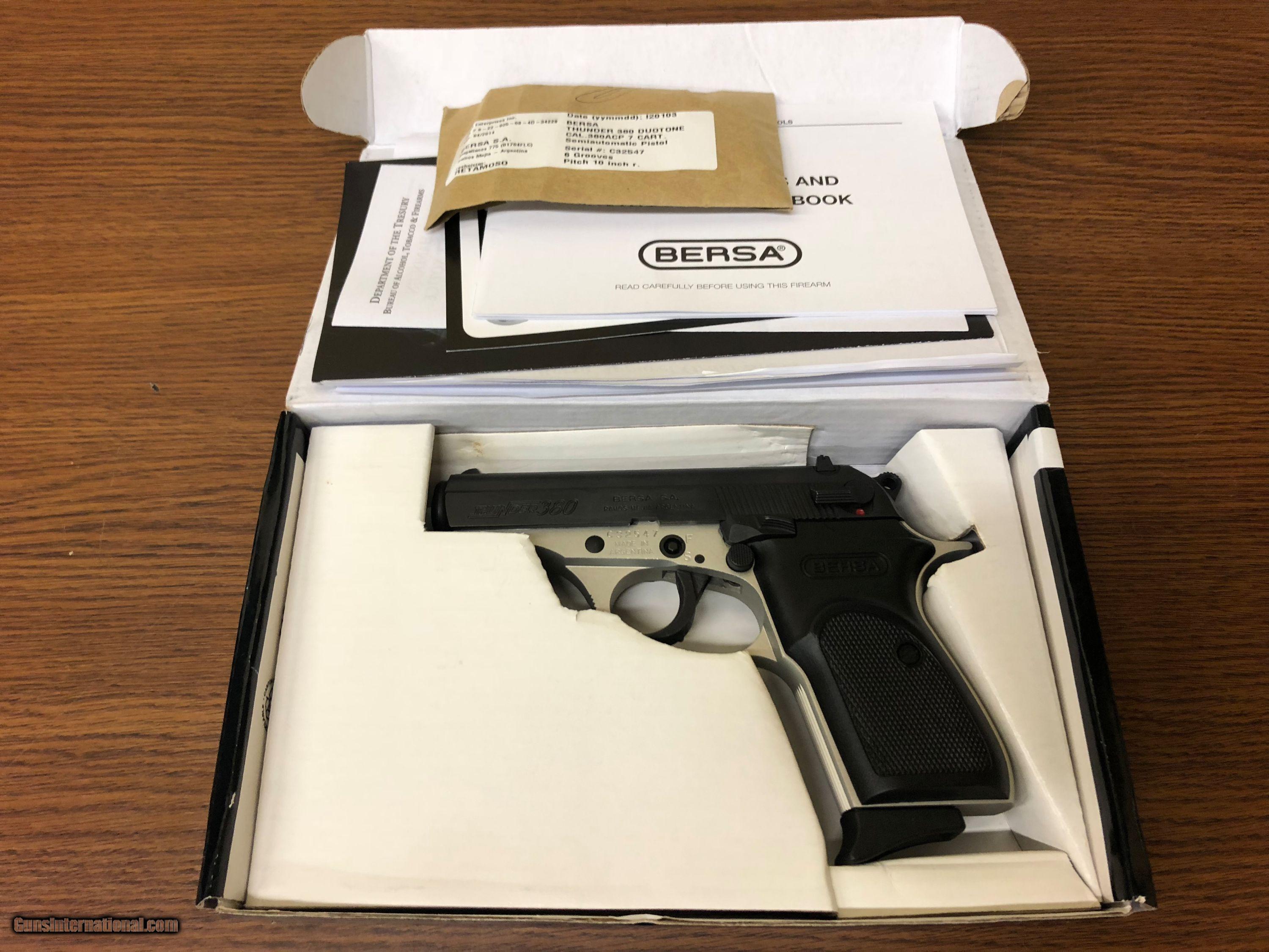 Description: USED, WITH FACTORY BOX Bersa Thunder 380 Pistol THUN380DT, 380 ACP, 3-1/2", Polymer Grip, Duo-Tone Finish, 7 Rd MPN: THUN380DTUPC: 091664903820 We also carry Bushnell, Nikon, Vortex, Leupold, Swarovski and Night Force Scopes. ****PLEASE CALL IN THE WITH THE SELLER’S INVENTORY NUMBER IF INQUIRING ABOUT A FIREARM****** WE DO NOT SHIP FIREARMS AND/OR FIREARMS’ PARTS OUT OF THE 50 UNITED STATES, SO DON’T ASK PRICE REFLECTS PAYMENT BY MONEY ORDER / CASHIERS CHECK. A 3% PREMIUM IS ADDED FOR CREDIT CARDS. WE DO ACCEPT PERSONAL OR BUSINESS CHECKS, BUT THERE IS A 10 DAY GRACE PERIOD ON THEM. Shipping is $40 for handgun and $30 for long gun. Shipping to Alaska and Hawaii will be more based on weight of firearm. WE DO OFFER A LAYAWAY PLAN. YOU CAN LAYAWAY FOR 30, 60, OR 90 DAYS. THERE IS A $5.00 CHARGE FOR EVERY 30 DAYS ITEM IS ON LAYAWAY. WE ALSO REQUIRE A 20% DOWN PAYMENT ON LAYAWAY ITEM. LAYAWAYS ARE NON REFUNDABLE. HERE IS HOW THIS PROCESS WORKS. YOU WOULD CALL US AT 540-337-9218 WITH LISTER # TO PURCHASE THE GUN. THEN ONCE I HAVE RECEIVED PAYMENT AND AN FFL (FEDERAL FIREARMS LICENSE) FROM A LICENSED DEALER IN YOUR AREA OF YOUR CHOICE. WE WILL THEN SHIP THE GUN TO THEM. YOU WOULD THEN PICK UP THE GUN AT YOUR LOCAL DEALER AND DO PAPER WORK THERE. Please have your FFL Dealers contact information when you call. DOMINION OUTDOORS 15 ANGELA COURT FISHERSVILLE ,VA 22939 540-337-9218 540-337-2422 fax M – F 9 to 6 ETZ Sat 9 – 4 ETZ ****PLEASE CALL IN WITH THE SELLER’S INVENTORY NUMBER**** ***PLANO HARD CASES AVAIABLE FOR PURCHASE $19.99 WITH THE PURCHASE OF A FIREARM.** SOLD |