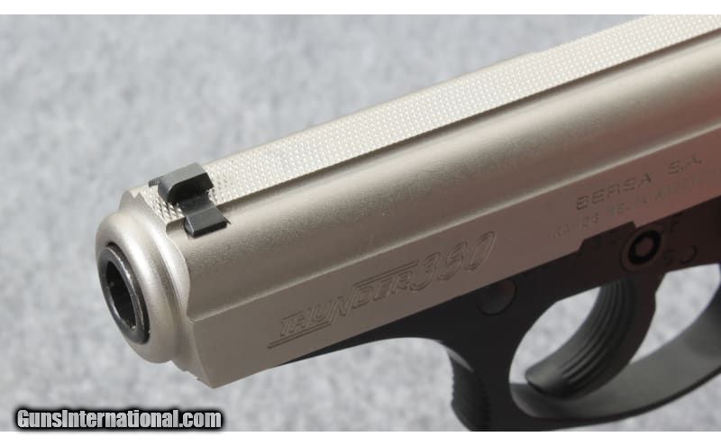 Description: The lightweight, compact Bersa Thunder 380 Plus semi-auto pistol is an ideal choice for a concealed carry firearm. The frame is constructed of lightweight corrosion resistant aluminum alloy and the slide is made of steel. The slide is finished in Cerakote Nickel color. Several safety devices on the Thunder Semi-Auto Pistol a manual thumb safety, a firing pin safety, a magazine disconnect, and an integral locking system—minimize the risk of accidental discharge. Three dot, windage adjustable sights interfere minimally in drawing the pistol from a concealed position. The Bersa Thunder .380 Plus offers reliable personal protection. .380 ACP SOLD Metal Condition: Excellent with some scratches Bore Condition: Excellent Barrels: 3.5 inch barrel Triggers: Double / Single action Weight: 24 oz. Sights: Adjustable three dot sights Item Location: Lehi, UT |