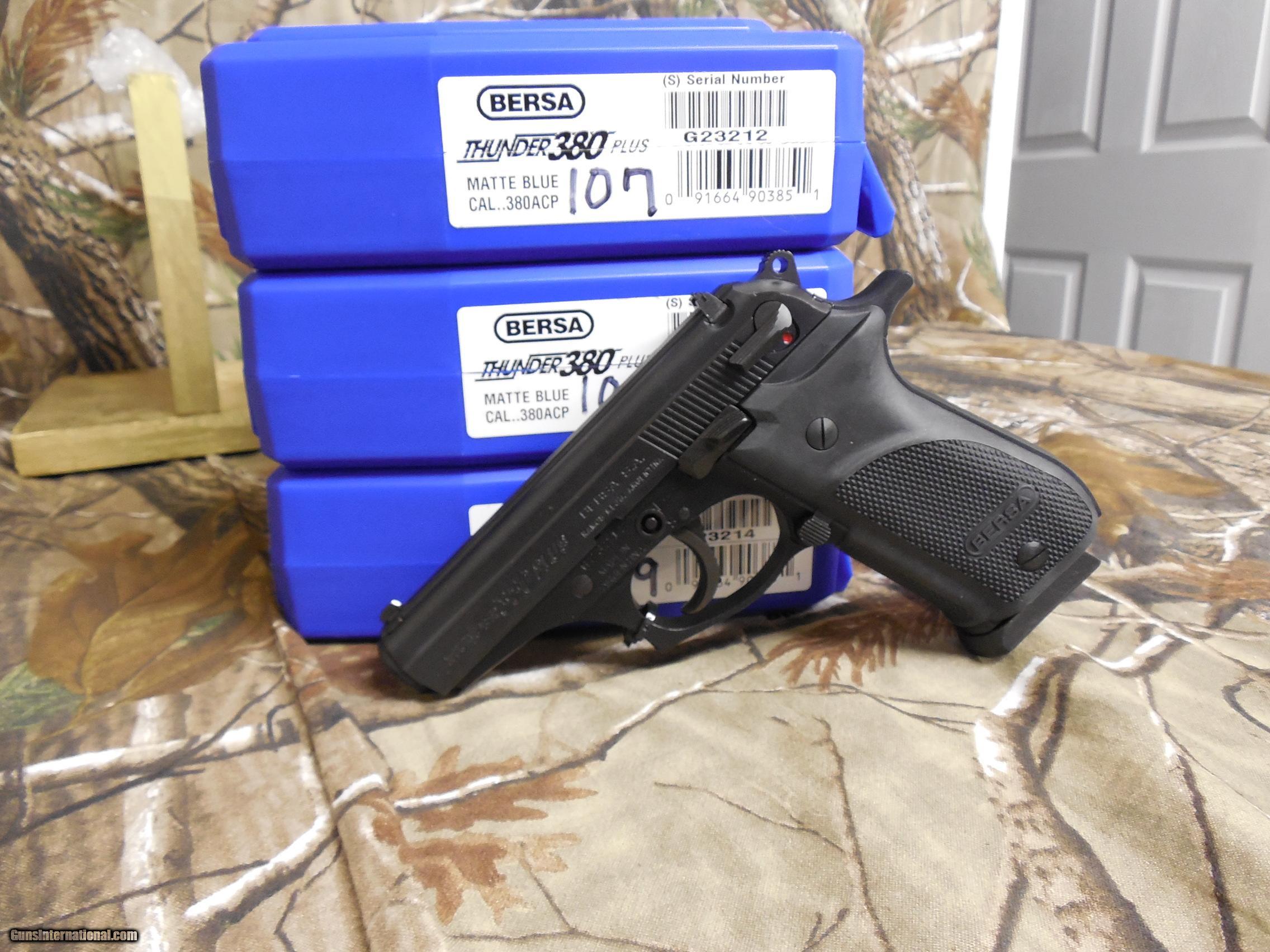 Description: FACTORY NEW IN BOX CLICK ON PICTURES TO ENLARGE Product Description The Thunder 380 Plus offers numerous valued features such as accuracy, reliability and versatility in a lightweight, compact design. Just like Thunder 380, the 380 Plus features dovetailed sights with a notched bar rear, combat-style trigger guard, an ambidextrous magazine catch and an extended slide release, but with a 15-round magazine for plenty of extra capacity. The 380 Plus has an alloy frame which provides strength and superior balance. Specifications Type:Pistol Action:Single/Double Caliber:380 Automatic Colt Pistol (ACP) Barrel Length:3.5" Capacity:15+1 Safety:Integral Locking System Grips:Black Polymer Sight Configuration:3-Dot Dovetail Weight:20.5 oz Frame Finish:Black Frame Material:Aluminum Alloy Barrel Type:Polished Bore, Deep Rifling Slide Description:Black Sight Style:Contrast? PAYMENTS: WE TAKE: Money Orders, Certified Checks & Credit Cards, (we charge 3% on Credit Cards because that is what they charge us.) PERSONAL CHECKS HELD TILL CLEARED Postal Money Orders & Credit Cards are preferred and ships the Quickest SHIPPING FOR HAND GUNS $ 25.00 U.S. SALES ONLY SHIPPING FOR RIFLES $ 30.00 U.S. SALES ONLY LAYAWAYS AVAILABLE ?EXTERA 15 ROUND MAGS $ 41.99 EACH ?STEALTH HOLSTERS $ 28.99 EACH PLEASE BE SURE THIS GUN IS LEGAL IN YOUR STATE I WILL SHIP GUN TO YOUR FFL DEALER; YOU NEED TO SEND ME THE PHONE # OF YOUR DEALER SO I CAN CALL FOR HIS OR HER FFL LICENSE All firearms must be shipped to a FFL transfer dealer. We ship to the US ONLY. It is your responsibility to make sure you comply with the laws of your county, state, and city on ALL item. We may sometimes use file photos instead of the actual gun. WHEN E-MAILING ME I WILL REPLAY, IF YOU DO NOT SEE A REPLAY FROM ME, CHECK YOUR JUNK MAIL, IT MAY GO THERE SOMETIMES WE HAVE BEEN ON THIS SIGHT FOR OVER 5 YEARS AND HAD OVER 4,171 ITEMS SOLD. YOU CAN REST EASY WITH US. WE HAVE A PLATINUM RATING & WE ARE ALSO A VERIFIED SELLER WITH GUNS INTERNATIONAL. WE ARE THE HONEST & TRUSTED STORE. THANK YOU AND GOD BLESS OUR TROOPS!!!! JOIN THE N R A; THE GUN OR AMMO YOU SAVE MIGHT BE THIS ONE!!! By purchasing this Gun you certify that you are at least 21 years of age, live in a state where this purchase is not prohibited, you are not under indictment for, and have not been convicted in any court of a crime punishable by imprisonment for a term exceeding 1 year, you are not a fugitive from justice, are not an unlawful user of or addicted to any controlled substance, have not been adjudicated as a mental defective nor have you been committed to any mental institution and you are not an alien illegally or unlawfully in the United States. SEE ALL OF AA GUNS & AMMO’S ITEMS AT aagunsandammo (GUNS, AMMO, HOLSTERS, SCOPES, RED-DOTS, MAG LOADERS, EXTRA MAGAZINES, BAYONETS & MUCH MORE) NEW STUFF ALWAYS COMING IN. "A gun is like a parachute. If you need one, and don't have one, you'll probably never need one again." SOLD |