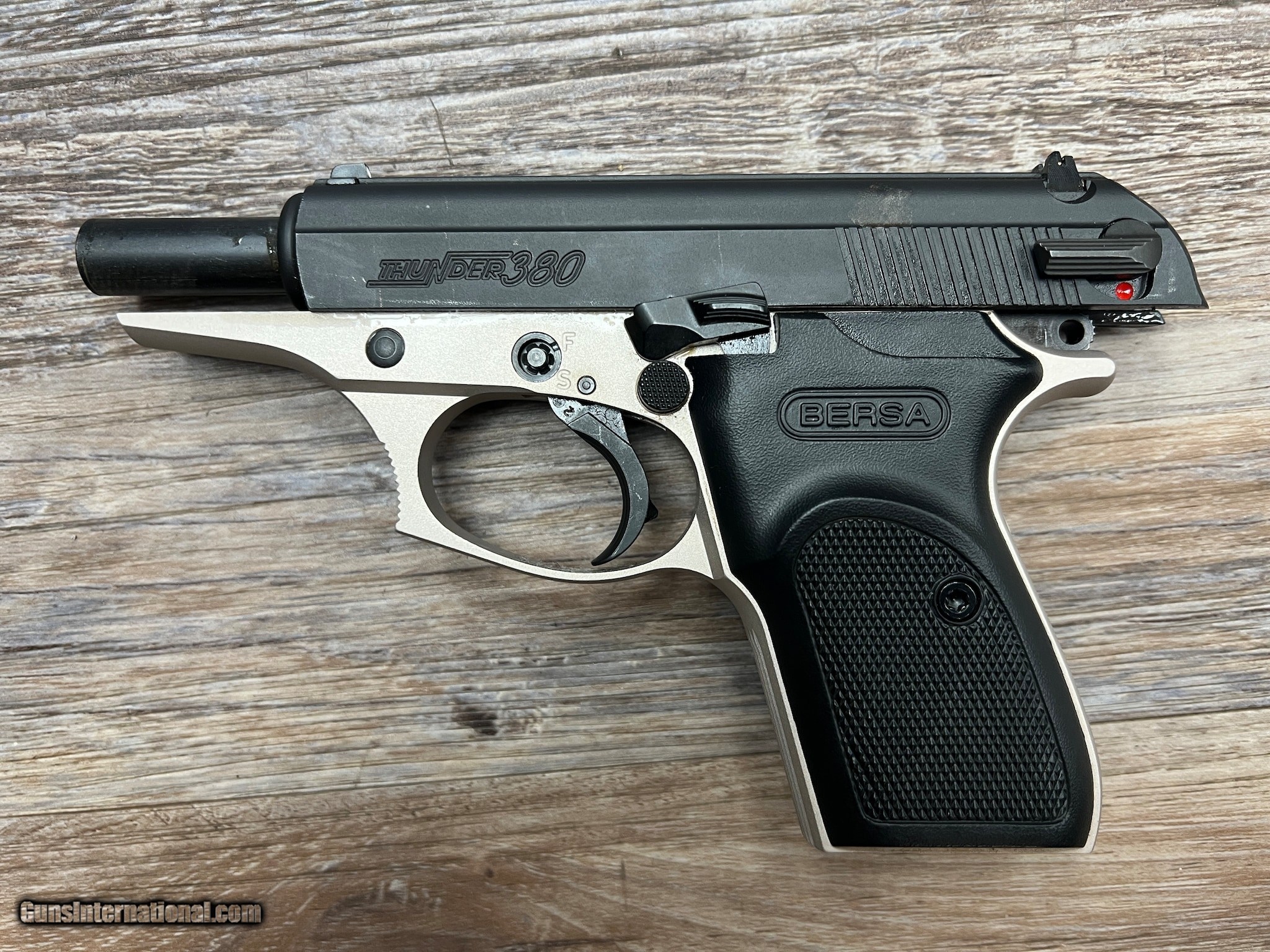 Description: Guns Listing ID: 1108211 This double action pistol has a 3.5in barrel with one 7rd magazine. SOLD Manufacturer: BERSA Model: Thunder 380 SS/BLK Caliber Info: .380 ACP Condition: Used - Non-Certified Barrels: 3.5 BARREL Finish: STAINLESS & BLACK |