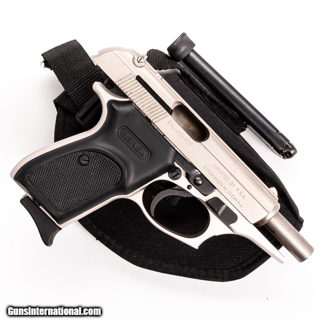Description: Guns Listing ID: 277453 The Bersa Thunder 380 is a compact handgun that boasts reliability, all-metal construction, and a wallet-friendly price tag. Designed to be functionally and aesthetically similar to the world-renowned Walther PPK, this pistol is well-suited for daily carry and personal protection more broadly. This model is in very good condition, with some minor marks on the slide. Purchase includes a soft case, two 8-round magazines, and an ambidextrous belt holster. SOLD Manufacturer: BERSA Model: THUNDER 380 Caliber Info: .380 ACP Condition: Used - Certified Barrels: 3.5 BARREL Finish: TWO-TONE |
