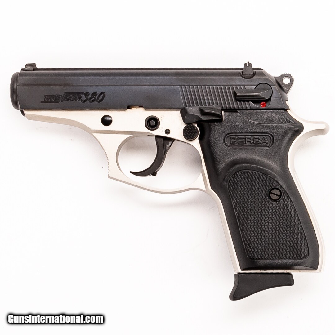 Description: Guns Listing ID: 369487 The Bersa Thunder 380 is a compact handgun that boasts reliability, all-metal construction, and a wallet-friendly price tag. Designed to be functionally and aesthetically similar to the world-renowned Walther PPK, this pistol is well-suited for daily carry and personal protection more broadly. Included is one 8-round magazine, the original case, and a manual. SOLD Manufacturer: BERSA Model: THUNDER 380 Caliber Info: .380 ACP Condition: Used - Certified Barrels: 3.5 BARREL Finish: TWO-TONE STAINLESS |