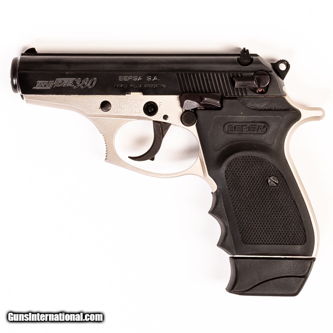 Description: Guns Listing ID: 405169 The Bersa Thunder 380 is a compact handgun that boasts reliability, all-metal construction, and a wallet-friendly price tag. Designed to be functionally and aesthetically similar to the world-renowned Walther PPK, this pistol is well-suited for daily carry as well as target practice at the range. This Thunder 380 comes with the original case, one 7-round magazine, extra grips, and a holster. SOLD Manufacturer: BERSA Model: THUNDER 380 Caliber Info: .380 ACP Condition: Used - Certified Barrels: 3.5 BARREL Finish: TWO-TONE |