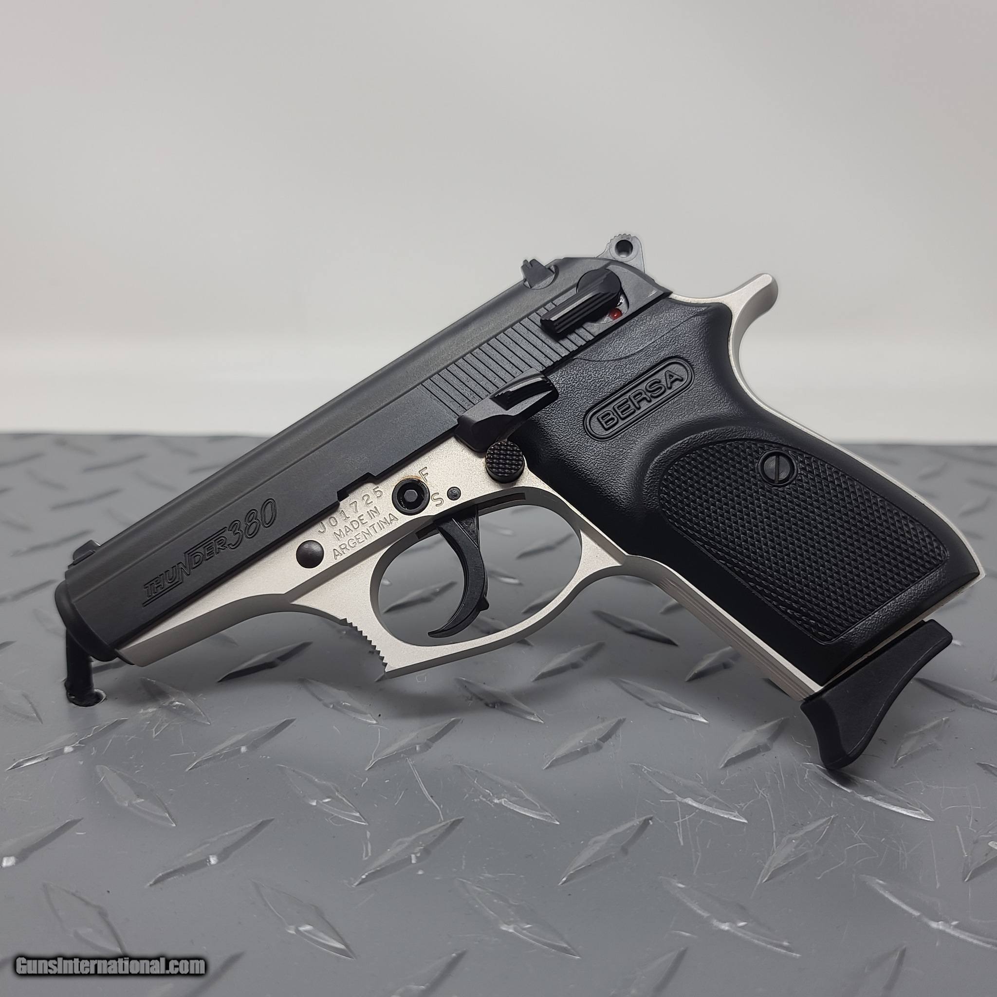 Description: Guns Listing ID: 519399 Used Bersa Thunder 380 with original box. This firearm has light wear from use. SOLD Manufacturer: BERSA Model: THUNDER .380 Caliber Info: 380 ACP Condition: Used - Non-Certified Barrels: 3.5 BARREL Finish: TWO-TONE |