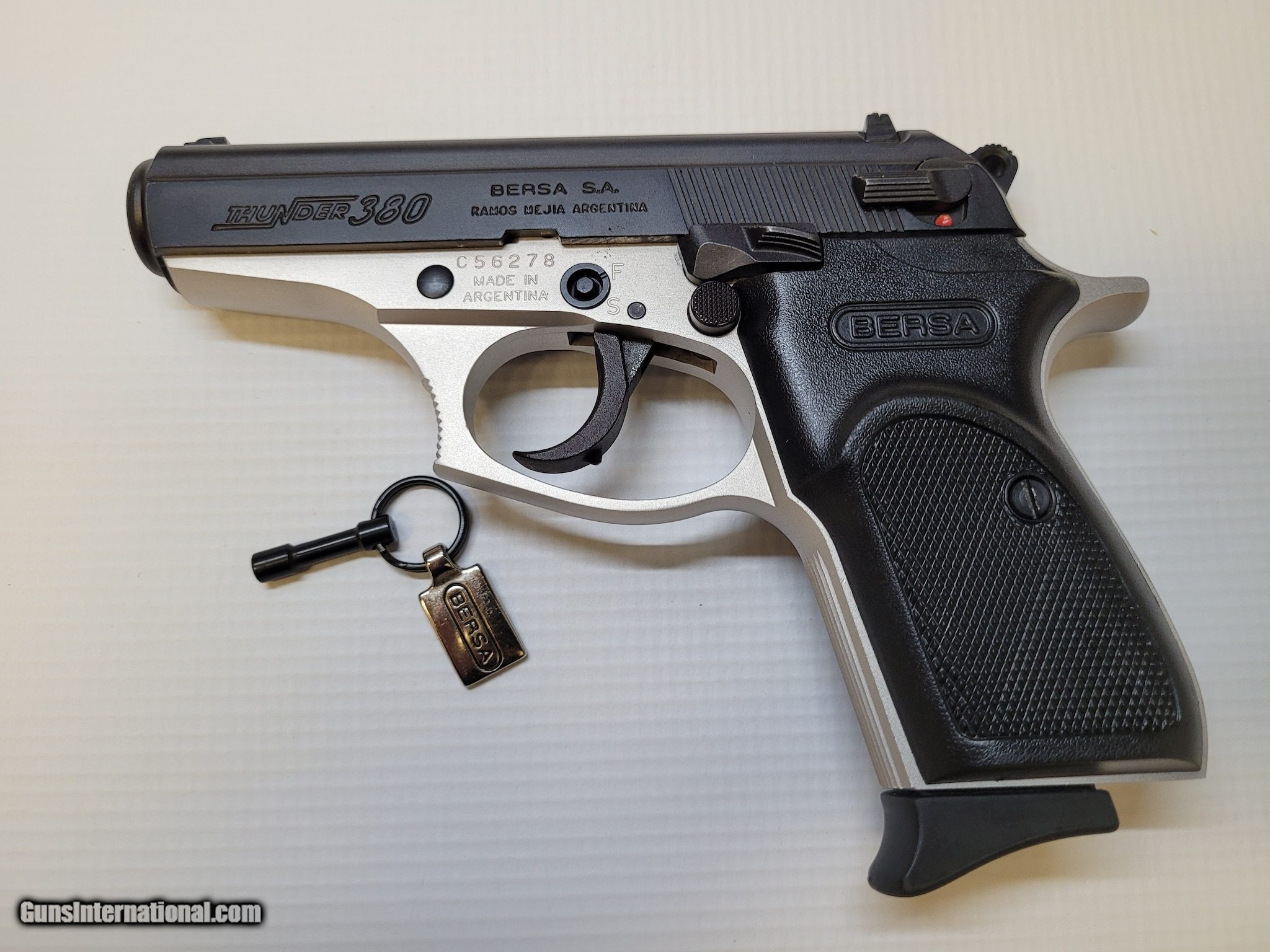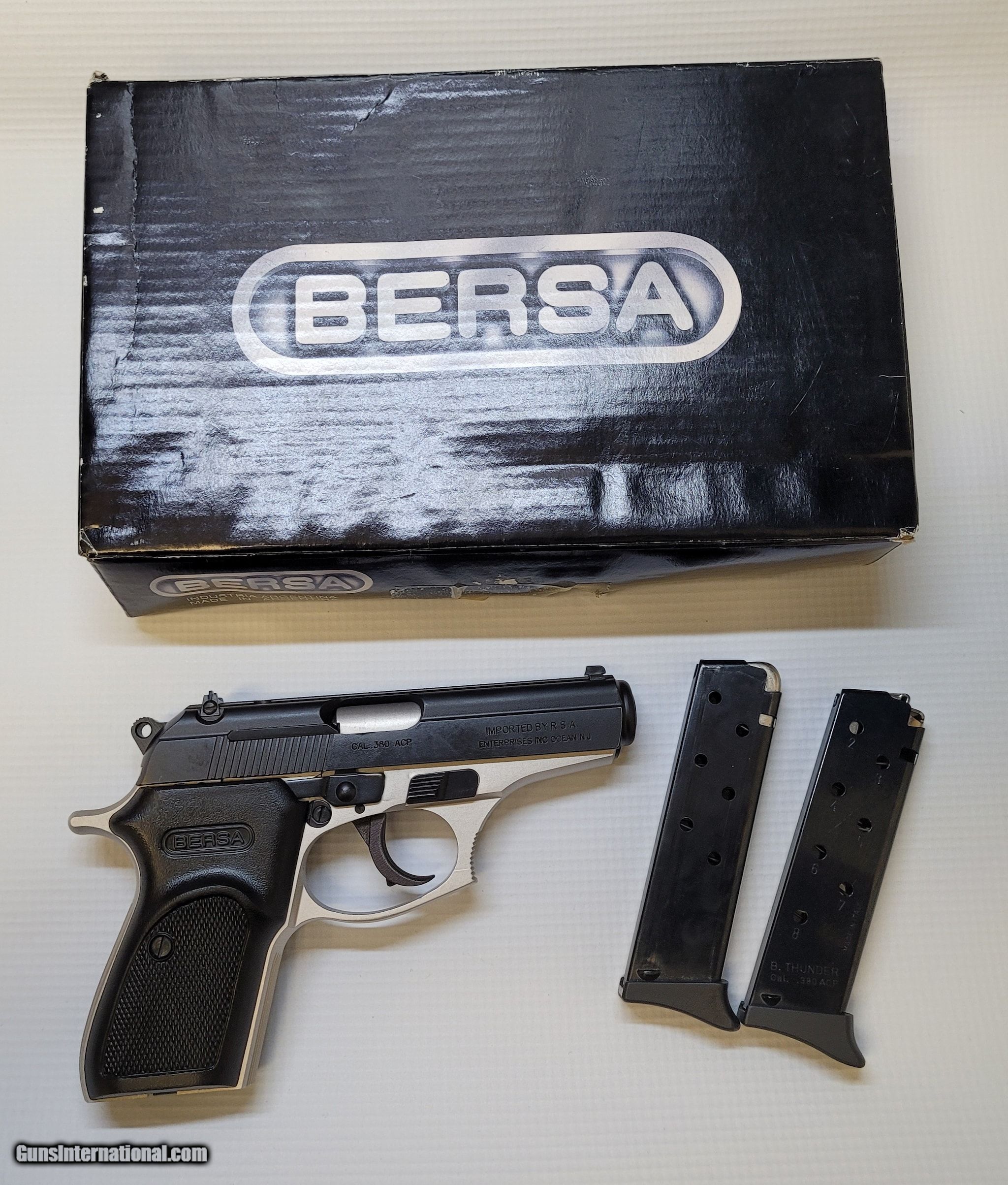 Description: Guns Listing ID: 752082 BERSA THUNDER 380 USED W/ FACTORY BOX W/ 1 FACTORY 8RD MAG AND 1 8RD MEC-GAR MAG Caliber: 380 ACP Condition: EXCELLENT Firearm Condition: SEE IMAGES Bore Condition: EXCELLENT Action: SEMI Barrel Length: 3.50” SOLD Manufacturer: BERSA Model: THUNDER 380 Caliber Info: .380 ACP Condition: Used - Non-Certified Barrels: 3.5 BARREL |