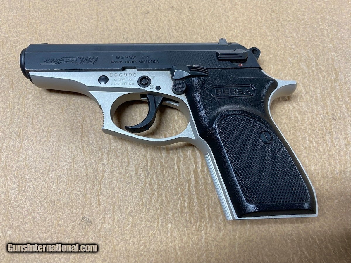 Description: Guns Listing ID: 887498 LIKE NEW IN BOX. COMES WITH 3-7RD MAGS AND ORIGINAL BOX. SOLD Manufacturer: BERSA Model: THUNDER .380 Caliber Info: .380 ACP Condition: Used - Non-Certified Barrels: 3.5 BARREL Finish: TWO TONE. BLACK/SILVER |