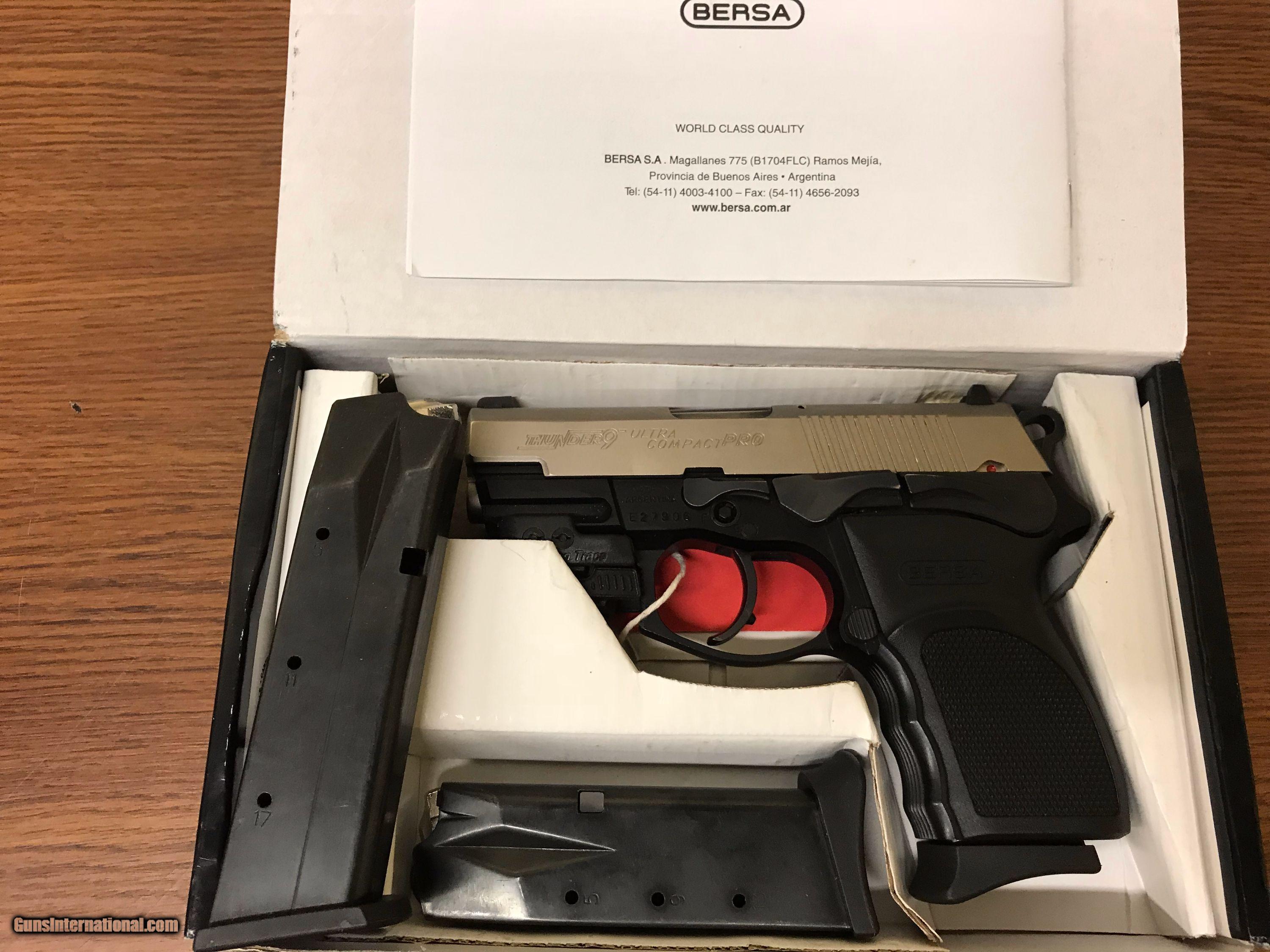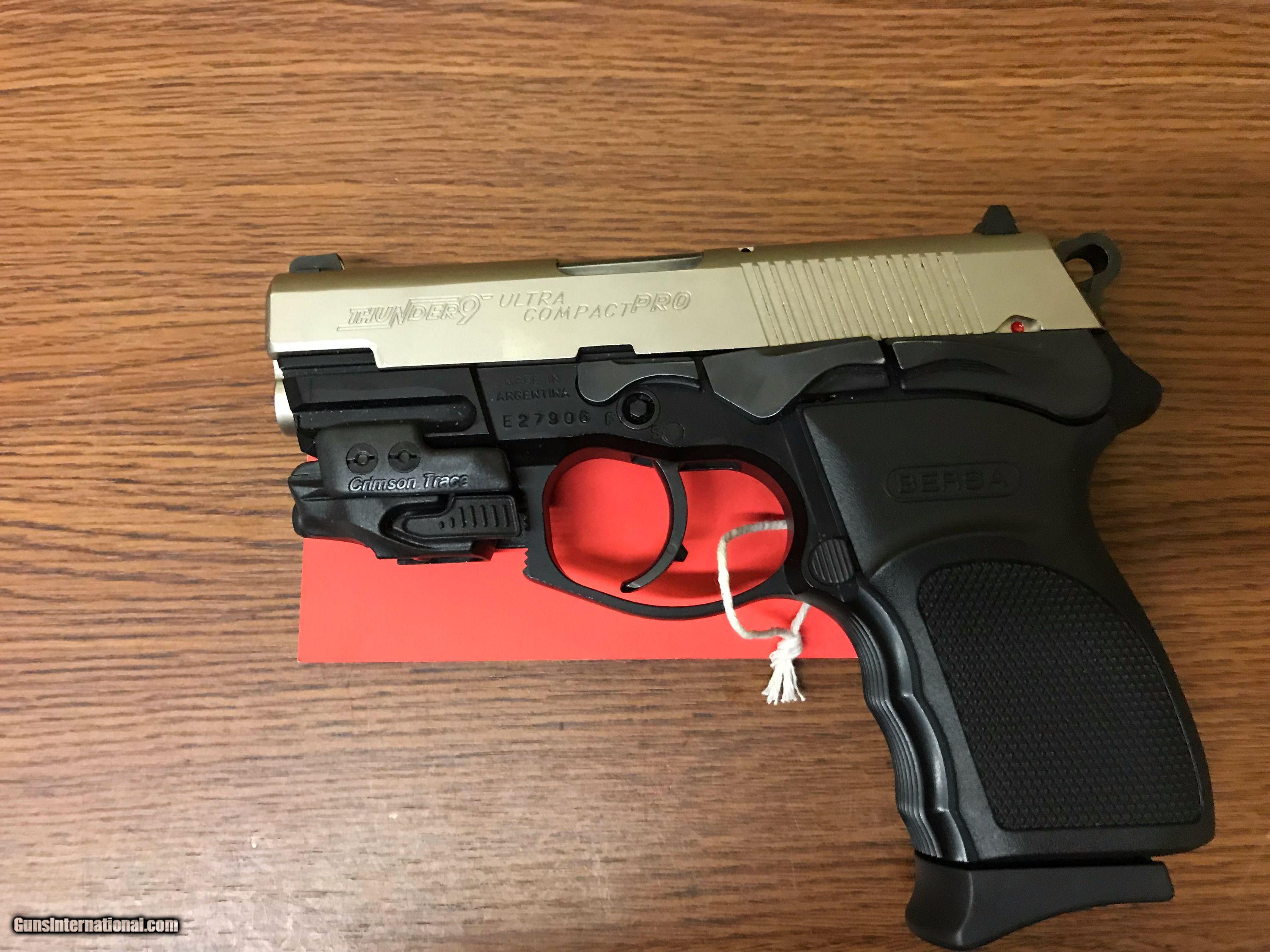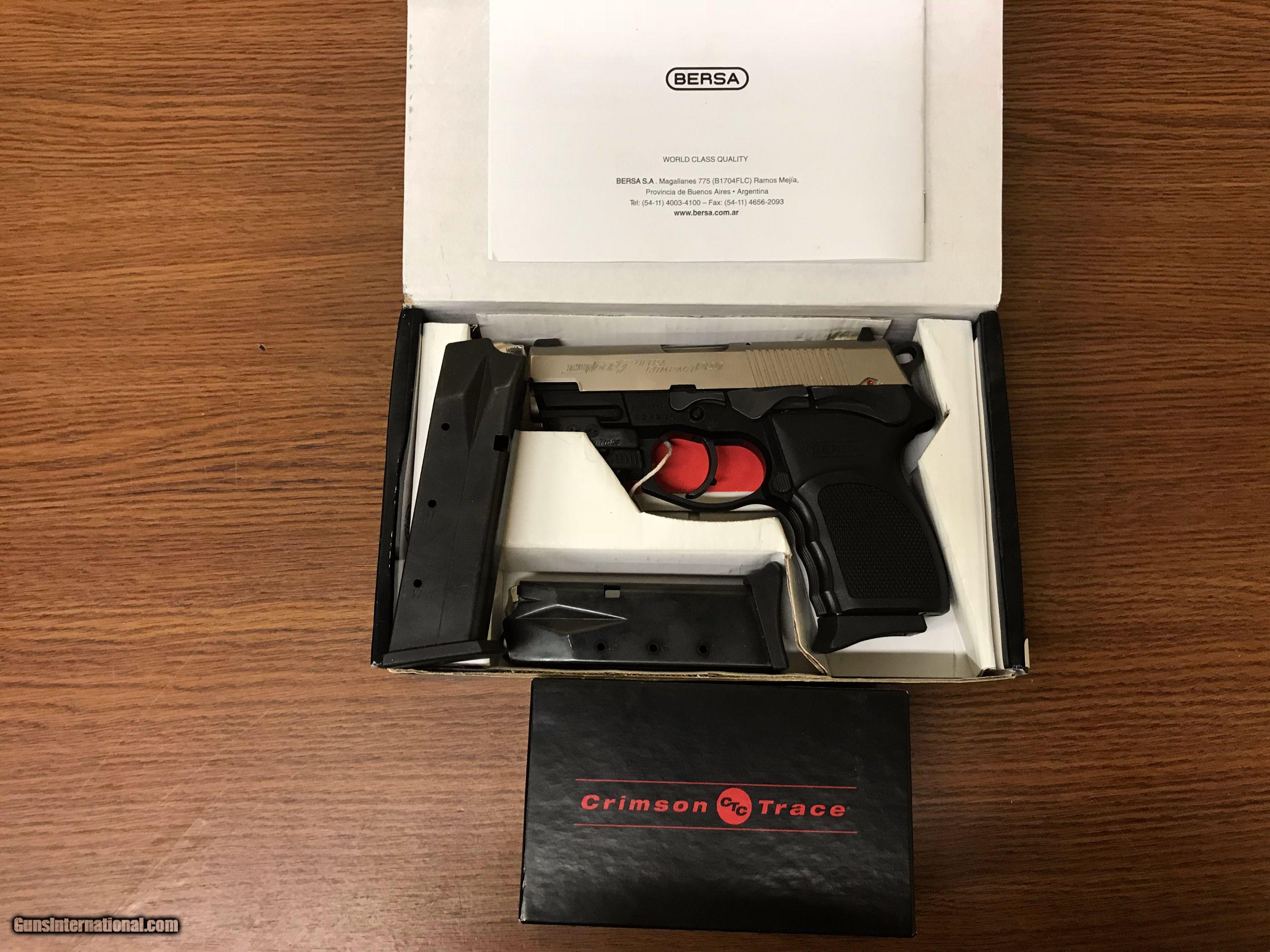 Description: USED, IN GOOD CONDITION, WITH FACTORY BOX Bersa Thunder 9 Ultra Compact Pistol THUN9UCDT13, 9mm, 3-1/2", Black Polymer Grip, Duo-Tone Finish, 13 Rd With Crimson Trace Laser, & extra Magazine. We also carry Bushnell, Nikon, Vortex, Leupold, Swarovski and Night Force Scopes. ****PLEASE CALL IN THE WITH THE SELLER’S INVENTORY NUMBER IF INQUIRING ABOUT A FIREARM****** WE DO NOT SHIP FIREARMS AND/OR FIREARMS’ PARTS OUT OF THE 50 UNITED STATES, SO DON’T ASK PRICE REFLECTS PAYMENT BY MONEY ORDER / CASHIERS CHECK. A 3% PREMIUM IS ADDED FOR CREDIT CARDS. WE DO ACCEPT PERSONAL OR BUSINESS CHECKS, BUT THERE IS A 10 DAY GRACE PERIOD ON THEM. Shipping is $40 for handgun and $30 for long gun. Shipping to Alaska and Hawaii will be more based on weight of firearm. WE DO OFFER A LAYAWAY PLAN. YOU CAN LAYAWAY FOR 30, 60, OR 90 DAYS. THERE IS A $5.00 CHARGE FOR EVERY 30 DAYS ITEM IS ON LAYAWAY. WE ALSO REQUIRE A 20% DOWN PAYMENT ON LAYAWAY ITEM. LAYAWAYS ARE NON REFUNDABLE. HERE IS HOW THIS PROCESS WORKS. YOU WOULD CALL US AT 540-337-9218 WITH LISTER # TO PURCHASE THE GUN. THEN ONCE I HAVE RECEIVED PAYMENT AND AN FFL (FEDERAL FIREARMS LICENSE) FROM A LICENSED DEALER IN YOUR AREA OF YOUR CHOICE. WE WILL THEN SHIP THE GUN TO THEM. YOU WOULD THEN PICK UP THE GUN AT YOUR LOCAL DEALER AND DO PAPER WORK THERE. Please have your FFL Dealers contact information when you call. DOMINION OUTDOORS 15 ANGELA COURT FISHERSVILLE ,VA 22939 540-337-9218 540-337-2422 fax M – F 9 to 6 ETZ Sat 9 – 4 ETZ ****PLEASE CALL IN THE WITH THE SELLER’S INVENTORY NUMBER**** ***PLANO HARD CASES AVAIABLE FOR PURCHASE $19.99 WITH THE PURCHASE OF A FIREARM.** SOLD |
