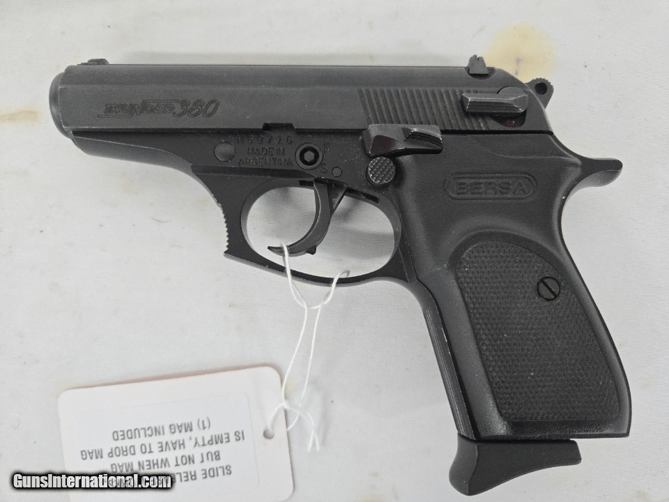 Description: Guns Listing ID: 590365 Used Bersa Thunder .380 ACP Semi-Automatic Pistol w/Magazine Bersa Thunder .380 ACP Semi-Automatic pistol (1) Magazine Operates as should, but needs a new magazine. Slide release gets hung up on an empty magazine. Confirmed that a new magazine works fine. Manufacturer: BERSA Model: Thunder w/Magazine Caliber Info: .380 ACP Condition: Used - Non-Certified Barrels: 3" BARREL Action: SEMI AUTOMATIC Finish: 1 Price: $169.99 Contact Seller |