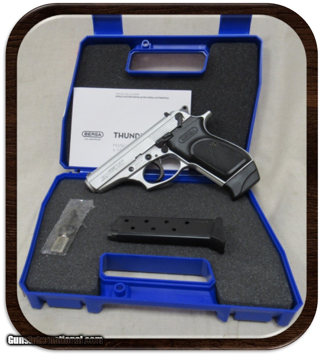 Description: Guns Listing ID: 690195 BERSA THUNDER - 380 ACP - 7-ROUNDS - 3.5\" BARREL HAMMER-FIRED DA/SA SEMI-AUTO PISTOL INCLUDES BERSA HARDCASE 2 MAGAZINES The Thunder .380, Bersa’s best selling model, offers numerous valued features accuracy, reliability and versatility in a lightweight, compact design. The Thunder 380 features dovetailed sights with a notched bar rear, combat-style trigger guard, extended slide release, extended finger rest magazine bottom. Its lightweight, small-frame and ideal capacity combine with Bersa’s time-tested reliability and accuracy to make the Thunder.380 an excellent choice for personal protection. SOLD Manufacturer: BERSA Model: THUNDER Caliber Info: 380 ACP Condition: Used - Non-Certified Barrels: 3.5 BARREL Finish: STAINLESS |
