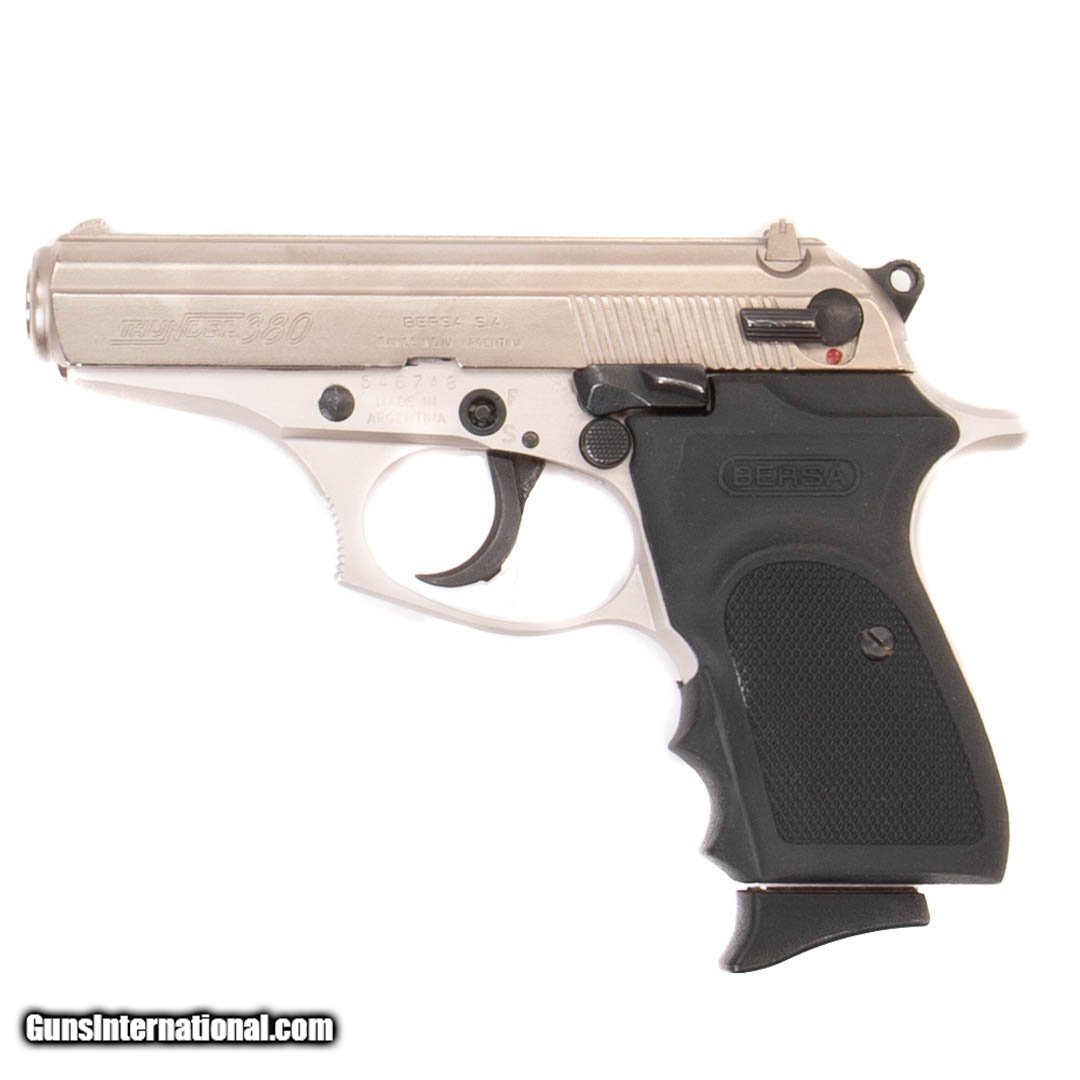 Description: Guns Listing ID: 493262 This Bersa Thunder 380 features rubber finger groove grips, a safety decocker, and a magazine disconnect. Purchase includes the original case, two 7-round magazines, one 8-round magazine, and the original plastic grips. Get the best bang for your buck when you get a Certified Used Firearm . When you see the Certified Used stamp on any of our firearms, you can be confident that you‚‚re getting exactly what you want – a gun only in very good to excellent condition and held to the highest quality standard. All Certified Used Guns come with a ‚‚no questions asked‚‚ return policy . PLUS, ALL CERTIFIED USED GUNS SHIP FR SOLD Manufacturer: BERSA Model: THUNDER380 Caliber Info: .380 ACP Condition: Used - Non-Certified Barrels: 3.60 BARREL Action: SEMI AUTOMATIC Finish: nickel Weight: 1.2 |