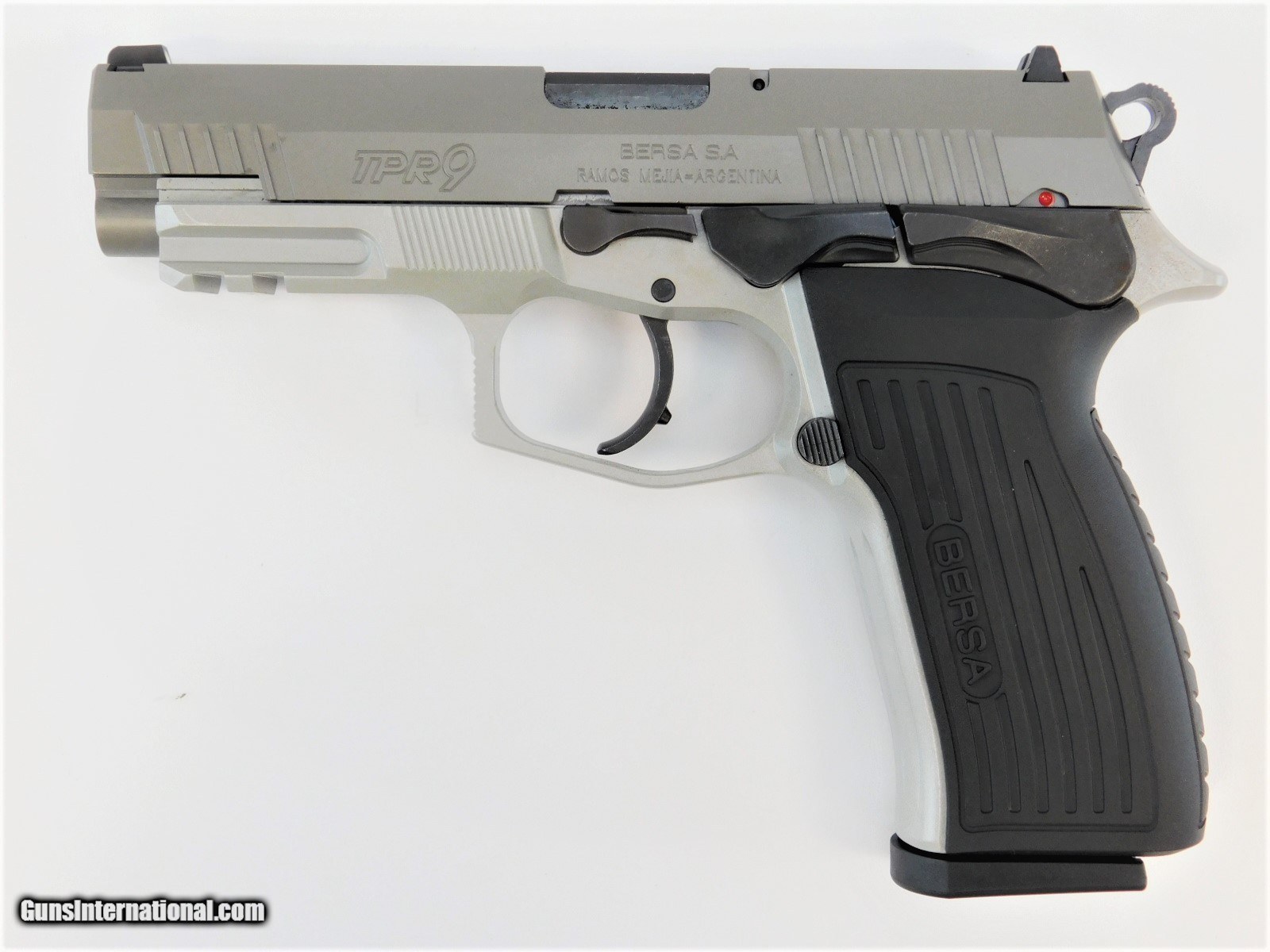 Description: BRAND NEW IN THE BOX AND READY TO SHIP! BUY IT NOW!! Manufacturer: Bersa Model: TPR9 SKU: TPR9CLR Caliber: 9mm Luger Capacity: (2) 17 Round Magazines Barrel Length: 4.25" Frame: Lightweight Alloy Finish: Clear Cerakote Grips: Black Polymer Sights: 3-Dot Overall Length: 7.5" Weight: 30.7 oz The next evolution of the Thunder Pro, the TPRC is an excellent choice for those who need stopping power without the bulk. It has a superior value in a compact, service-grade handgun and it preserves the best features of its predecessor. The TPRC features an improved Browning Petter barrel locking system which provides reliable feeding and ejection. The safety, cockinglever, slide stop levers, and the magazine catch are completely ambidextrous that makes this a perfect fit for right and left-handed shooters.