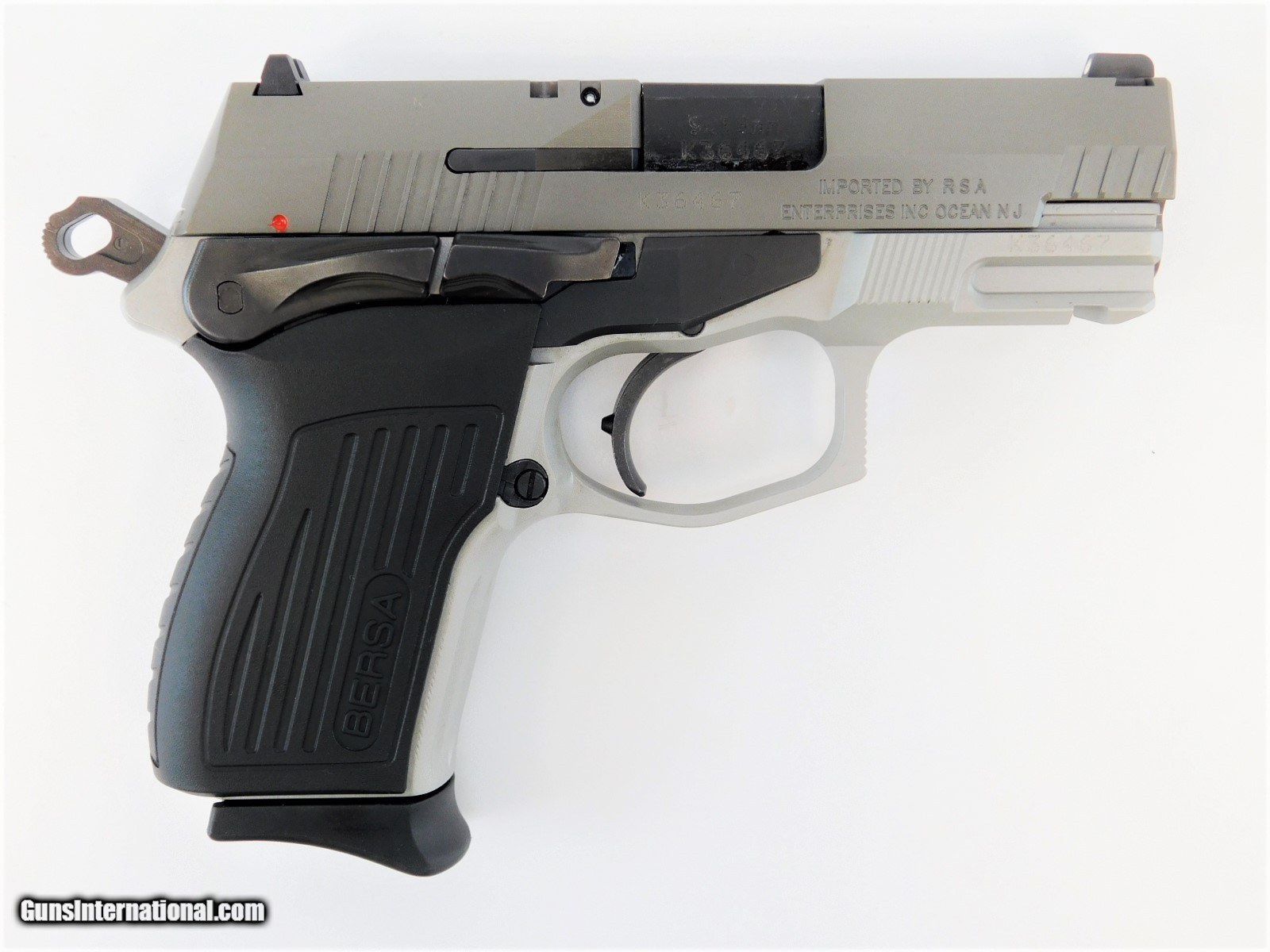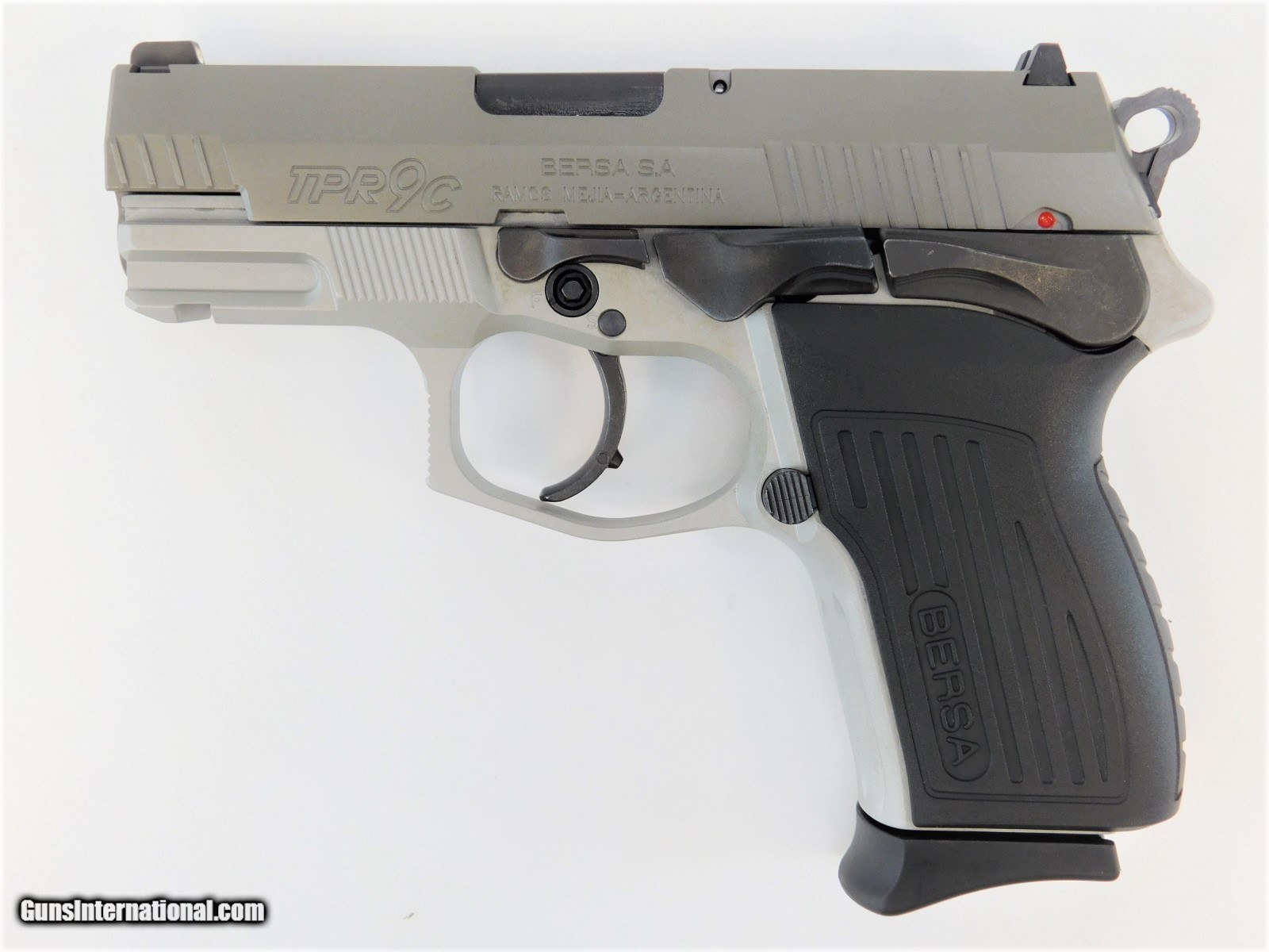 Description: BRAND NEW IN THE BOX AND READY TO SHIP! BUY IT NOW!! Manufacturer: Bersa Model: TPR9C Compact SKU: TPR9CCLR Caliber: 9mm Luger Capacity: (2) 13 Round Magazines Barrel Length: 3.25" Frame: Lightweight Alloy Finish: Clear Cerakote Grips: Black Polymer Sights: 3-Dot Overall Length: 6.5" Weight: 23 oz The next evolution of the Thunder Pro, the TPRC is an excellent choice for those who need stopping power without the bulk. It has a superior value in a compact, service-grade handgun and it preserves the best features of its predecessor. The TPRC features an improved Browning Petter barrel locking system which provides reliable feeding and ejection. The safety, cockinglever, slide stop levers, and the magazine catch are completely ambidextrous that makes this a perfect fit for right and left-handed shooters.