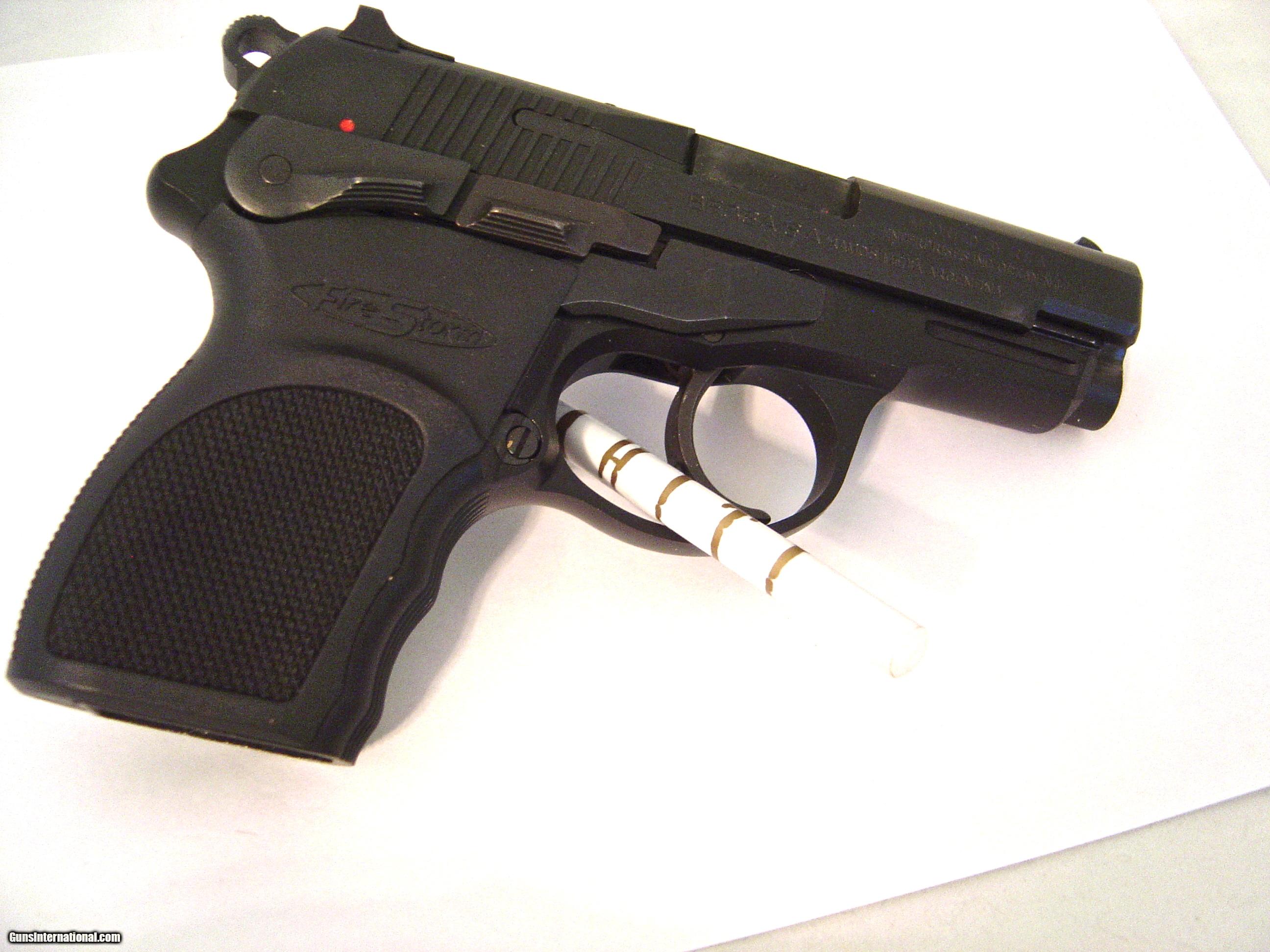 Description: Price Reduced! Fire Storm Mini9 9mm pistol. Comes with original box, paperwork, Trigger lock and Key and two ten shot magazines. Semi Automatic with Hammer Drop Ambidextrous Safety. Shipping to the FFL Dealer of your choice will be $30.00. A check or money order for the agreed upon price plus $ 30.00 for shipping and a copy of the FFL licensee that will be receiving the gun for you will be required. Gun will ship immediatly after the check or money order clears. SOLD Manufacturer: Bersa SA Model: Mini9 Serial Number: 718224 Caliber Info: 9mm Bore: 9mm Chambers: 1 Condition: Excellent Metal Condition: Excellent Bore Condition: Excellent Barrel Type: 3 inch Action: Double Action Finish: Matte Black Weight: 29 oz. Sights: Fixed White Outline Manufacture Date: 2005 Extras: Magazine Case: Hard Case Item Location: Home |