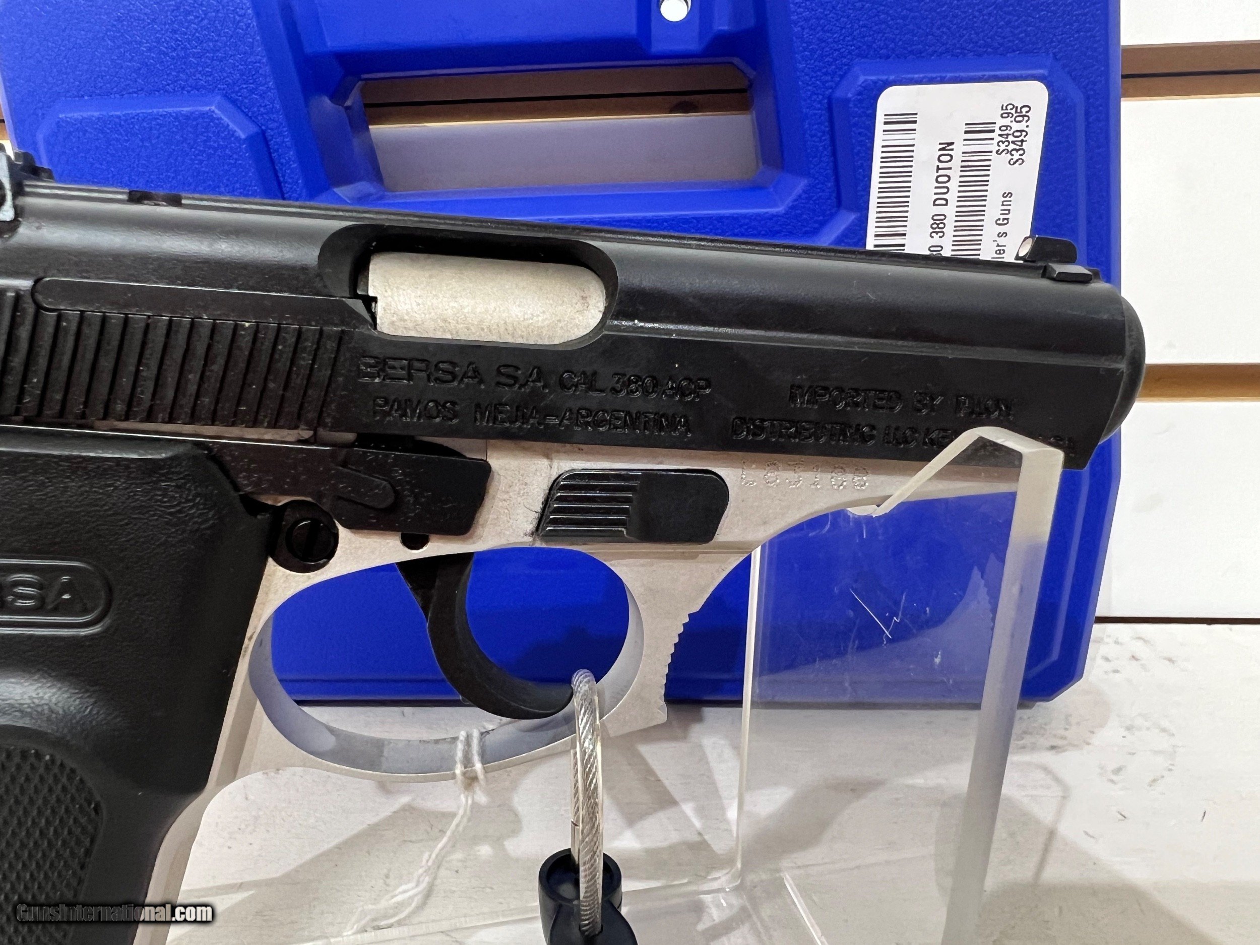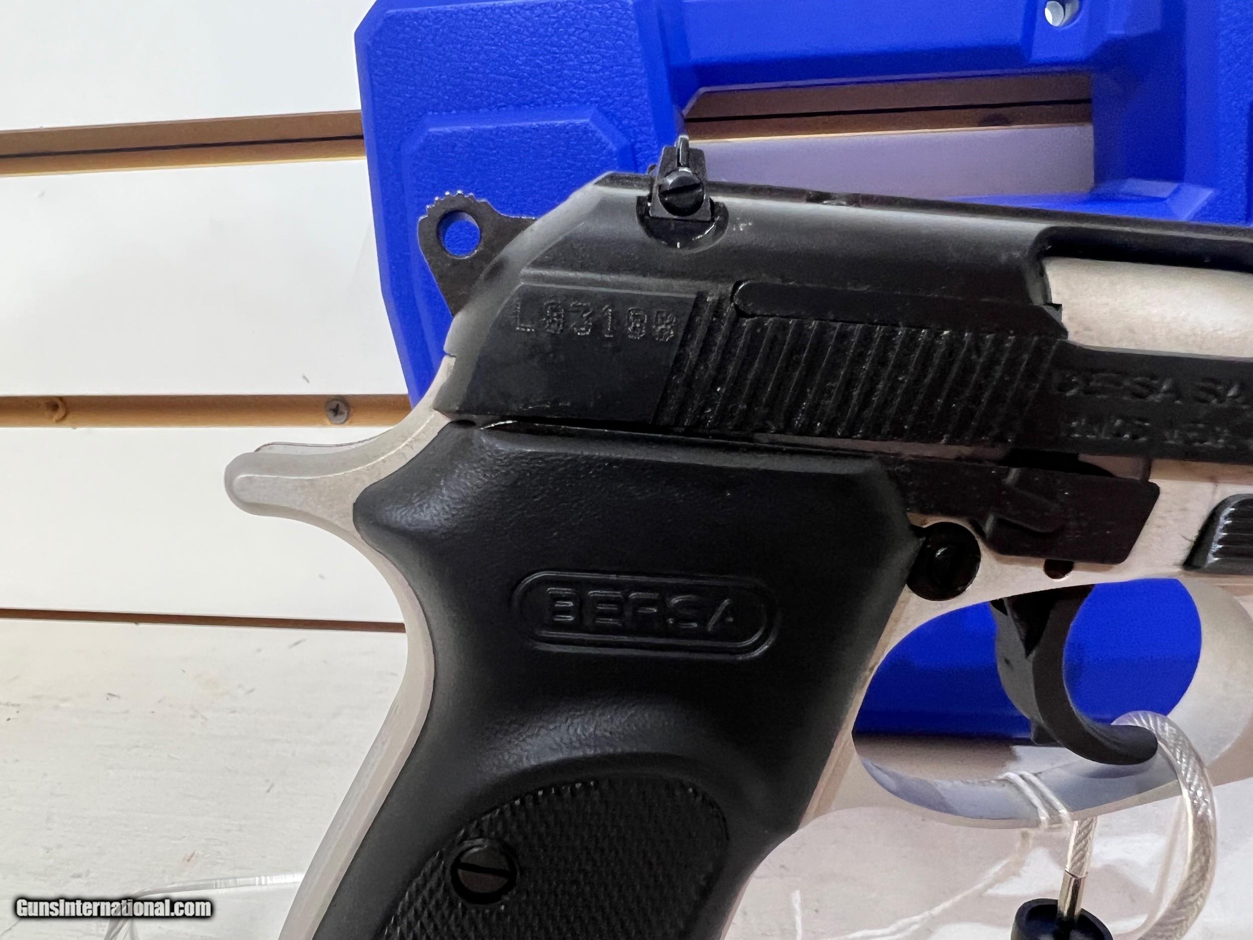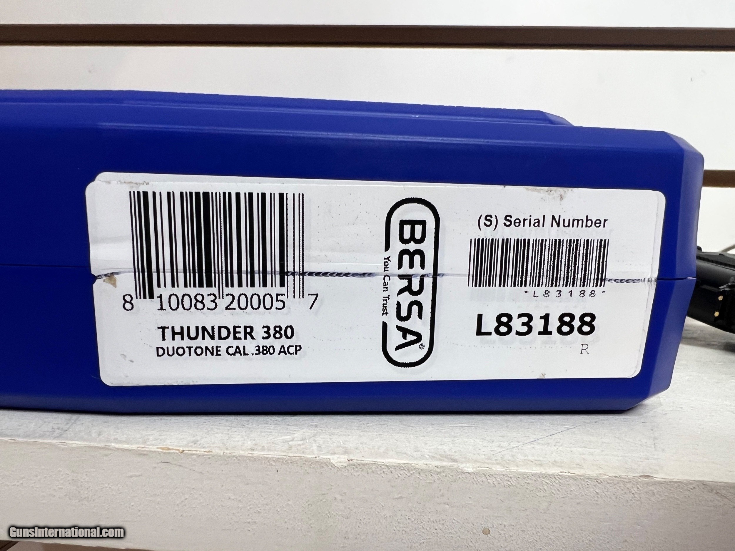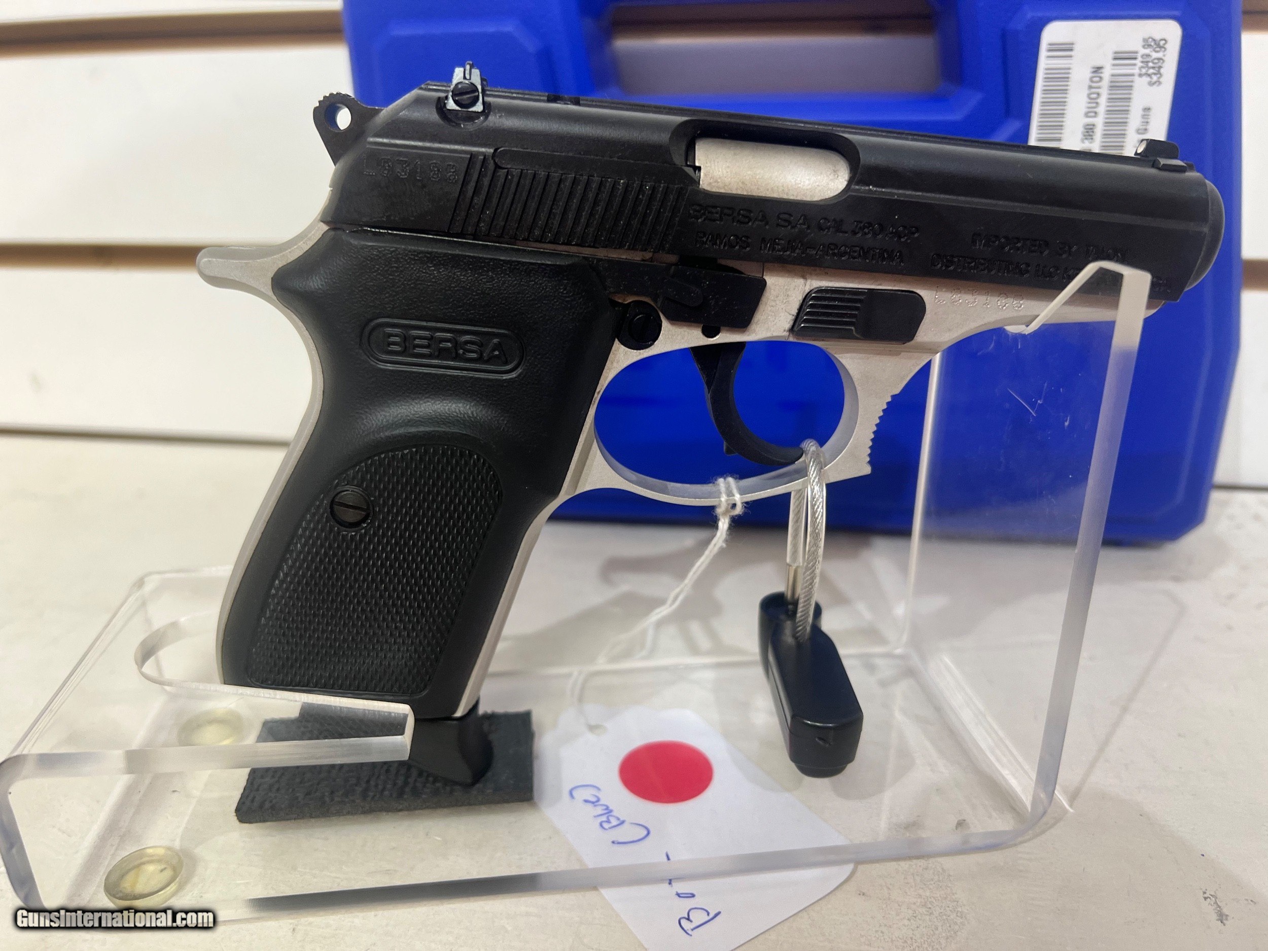 Description: new BERSA T380DT8 380 DA 8R DT 1 mag new in hard plastic case (CATID:26); (ACTION:DAO); (CALIBER:380 ACP); (CAPACITY:8+1); (SAFETY:DECOCKER); (SIGHT CONFIGURATION:3-DOT); (BARREL LENGTH:3.50); (GRIPS:TEXTURED BLACK POLYMER); (FRAME FINISH:SATIN NICKEL); (SLIDE DESCRIPTION:MATTE BLACK STEEL); (DEPARTMENT:FIREARMS); (CATEGORY DESCRIPTION:PISTOLS) Buyer pays shipping Millers Gun Center Located in New Castle, Delaware "Home of TAX-Free shopping" No Credit Card Fees Send Gun international inquiry and then call 302-328-9747 to complete your purchase SOLD Serial Number: L83188 |