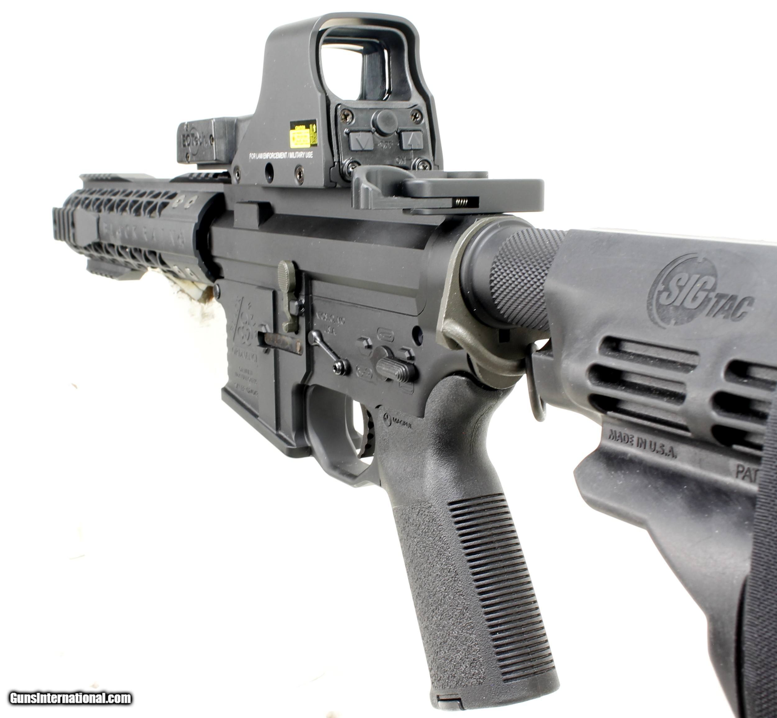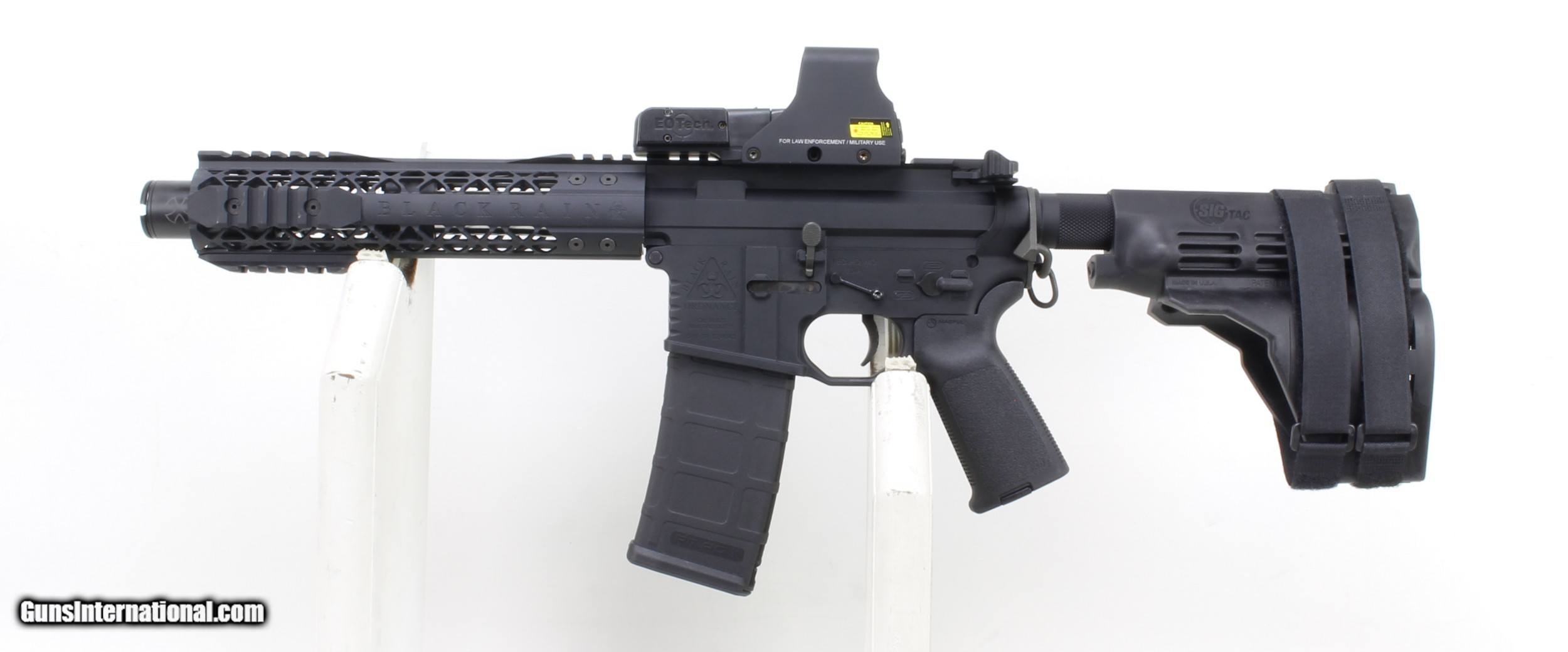 Description: Black Rain Fallout 15 AR Pistol in .223/5.56. SN #BR 024043. Mfg. in 2016. 7 1/2" barrel with an immaculate, bright bore with strong lands and grooves. Black anodized metal finish is in excellent condition. Black Rain Ordinance Pic Rail Foregrip, Trigger Group, Nickel Boron Bolt Carrier Group, Extended Charging Handle and Lower Receiver. Sig Pistol Brace. Includes an EoTec Red Dot with visible laser attachment. Magpul synthetic stock. Weight 7.4 lbs. Trigger Pull 4 lbs adjustable. This product can not be shipped to the following locations: California, Colorado, Connecticut, District Of Columbia, Hawaii, Illinois, Maryland, Massachusetts, New Jersey, New York, American Samoa, Guam, Northern Mariana Islands, Puerto Rico, U.S Minor Outlying Islands, and the Virgin Islands. Ships to Lower 48 W/ Insurance $45.00. More photos available upon request. SOLD Handgun Caliber: .223 Remington Manufacturer: Black Rain Model: Fallout 15 AR Pistol Serial Number: BR 024043 Barrel Length: 7 1/2 Condition: Excellent Metal Condition: Excellent Bore Condition: Excellent LOP: Adjustable |