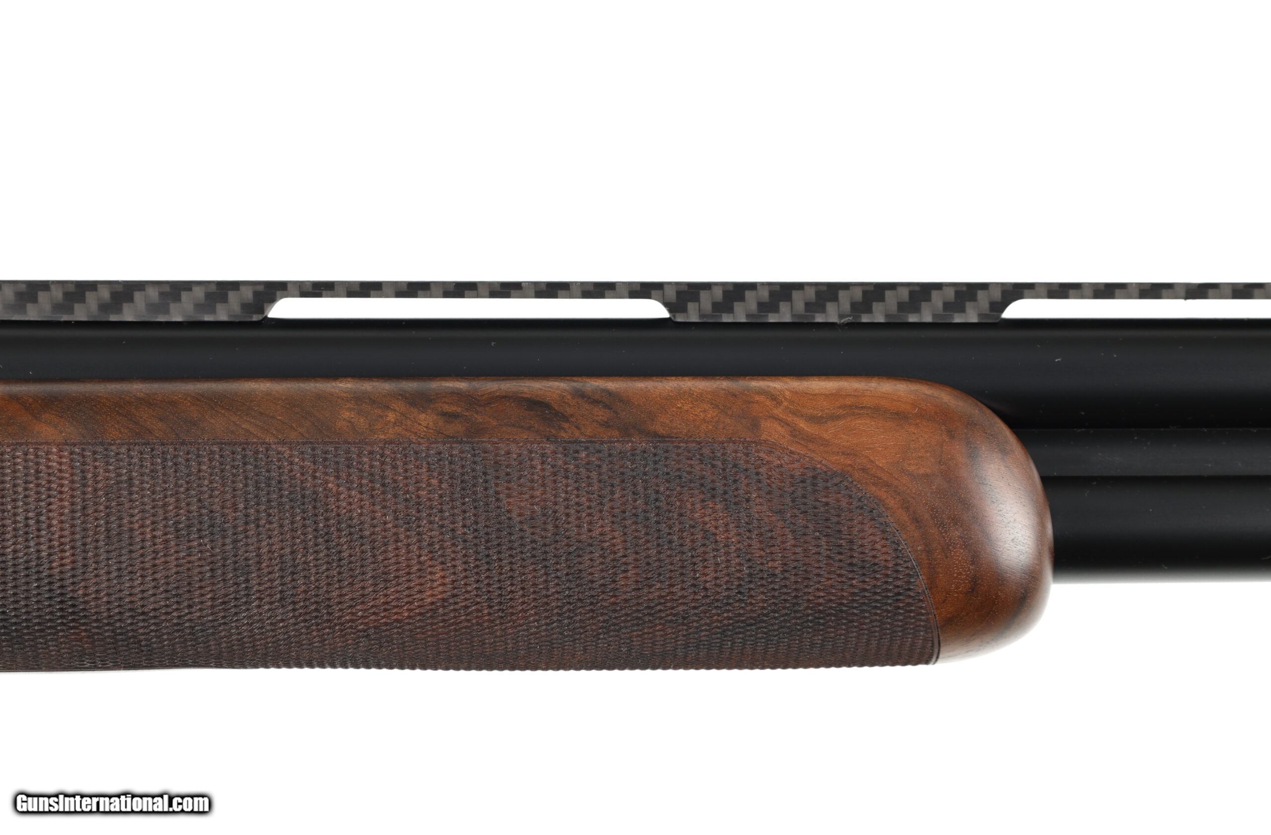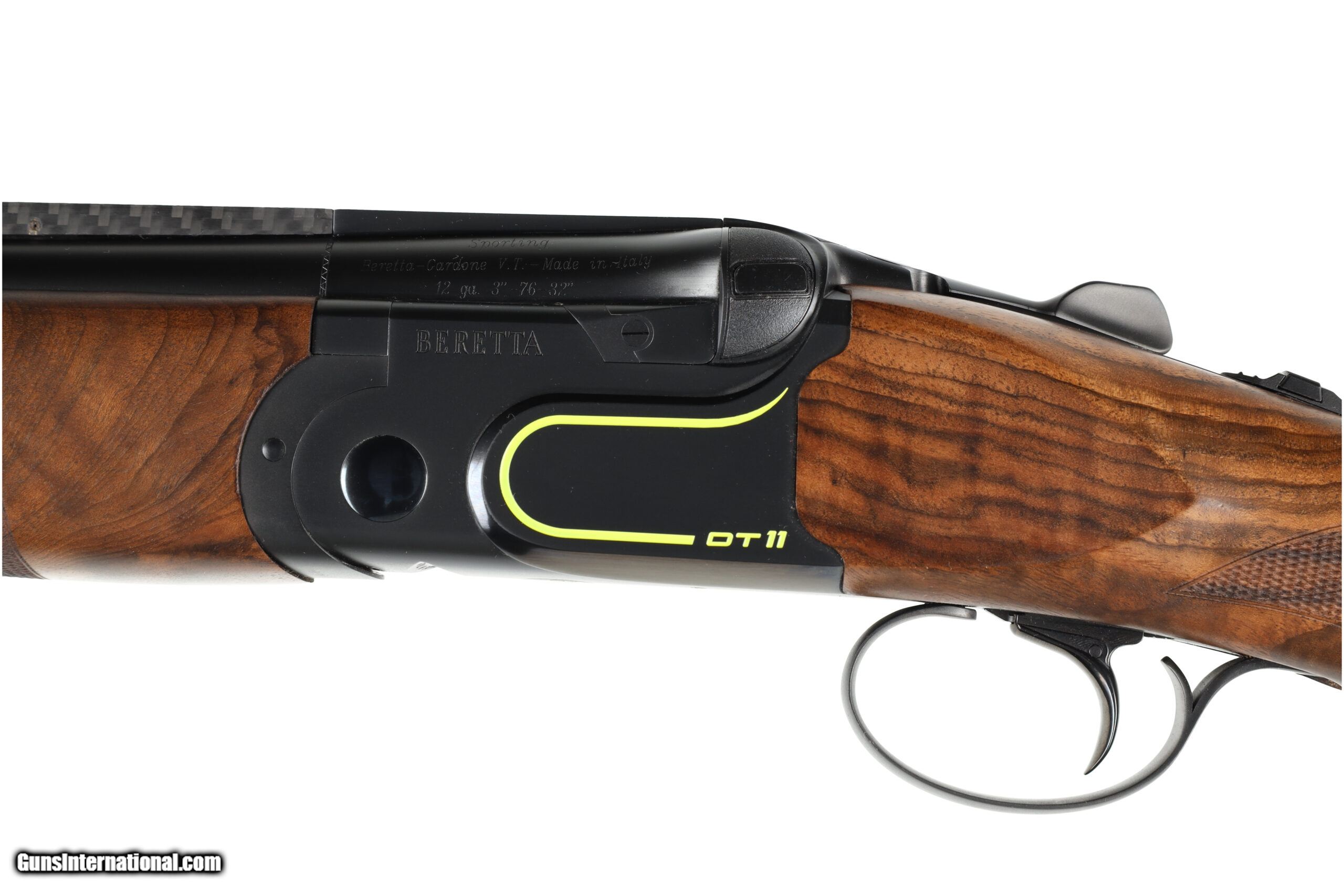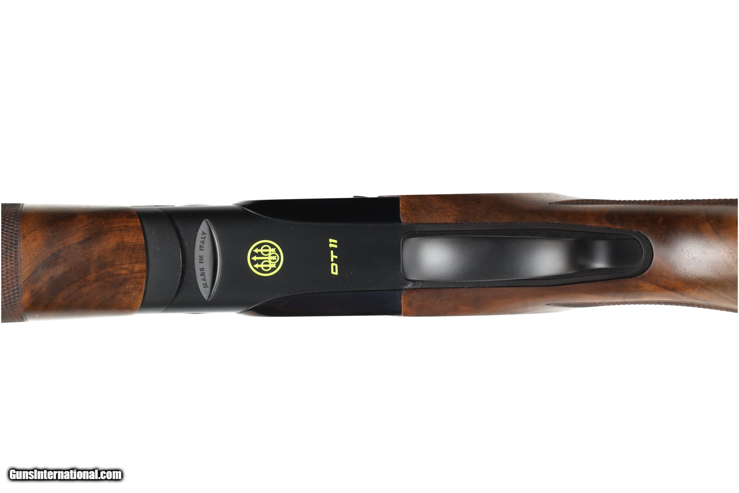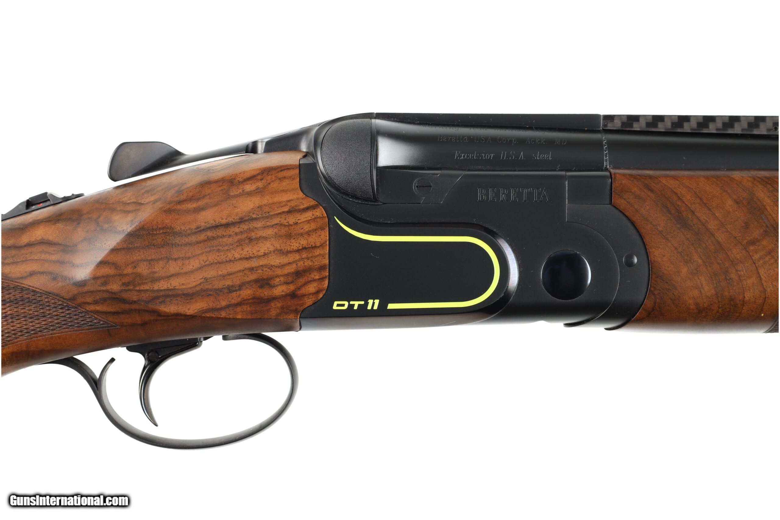 Description: The DT11 is Beretta's top-of-the-line competition shotgun, used by the world's absolute best clay shooters. It is built around a vault-tough cross-bolt action, a whole 3mm wider than its predecessor's (the DT10) and therefore stronger and even more durable. The trigger has a truly custom feel, breaking at a crisp 3 ½ lbs--which minimizes muscular interference with your swing and results in many more broken targets. The center-mass of the DT11 is designed to be low and coaxial with the bottom barrel, giving this shotgun unmatched stability and greatly reducing muzzle rise. And with its premium-grade Steelium-Pro barrels, Beretta Optimachoke Tubes and high-grade stock that can be tailored to the customer's specifications, the DT11 was born and bred to keep the serious competitor on target and on the podium. The Black DLC model comes with a number of improvements over the standard model, all centering around the carbon fiber rib and new DLC coating. The low mass carbon rib allows for faster swing and easier follow through that can be tailored to your preference with the adjustable weight kit and the DLC coating with green accents not only enhances the appeal, but also the durability in the field, as it is much harder to scratch than traditional bluing. Manufactured in: Italy Hand: Right Hand Action Finish: Plasma Black DLC Action Description: Over / Under Metal Finish: Original Barrel Length: 32 Inches Barrel Condition: New Stock Finish: Original Stock Condition: New Type of Butt: Factory Pad Pad Thickness: 3/4" Grip: Pistol Forend: Checkered Cast Amount: 1/4" Extra Barrels: No. SOLD Manufacturer: Beretta Model: DT-11 Sporting Chambers: 3 Inches Ejectors: Yes Condition: New Metal Condition: New Action: Over / Under Triggers: Single Gauge Info: 12 Gauge Stock Comb: 1 1/2 Stock Heel: 2 3/8 Stock Cast: Off Fore End: Checkered Butt Pad: 3/4 LOP: 14 1/2 Rib: Ventilated Finish: Original Weight: 8.8 lbs Manufacture Date: 2024 Chokes: 5 Factory Chokes Extras: No. Case: Makers ABS Case |