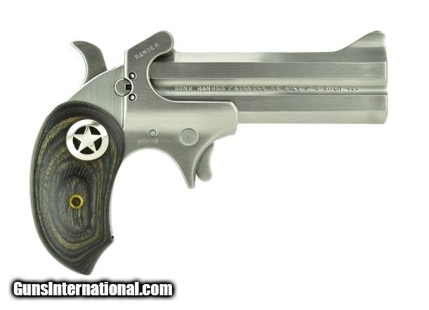 Description: Bond Ranger .45LC/410 Gauge caliber derringer. Stainless derringer with 4” barrels in excellent condition with box and holster.