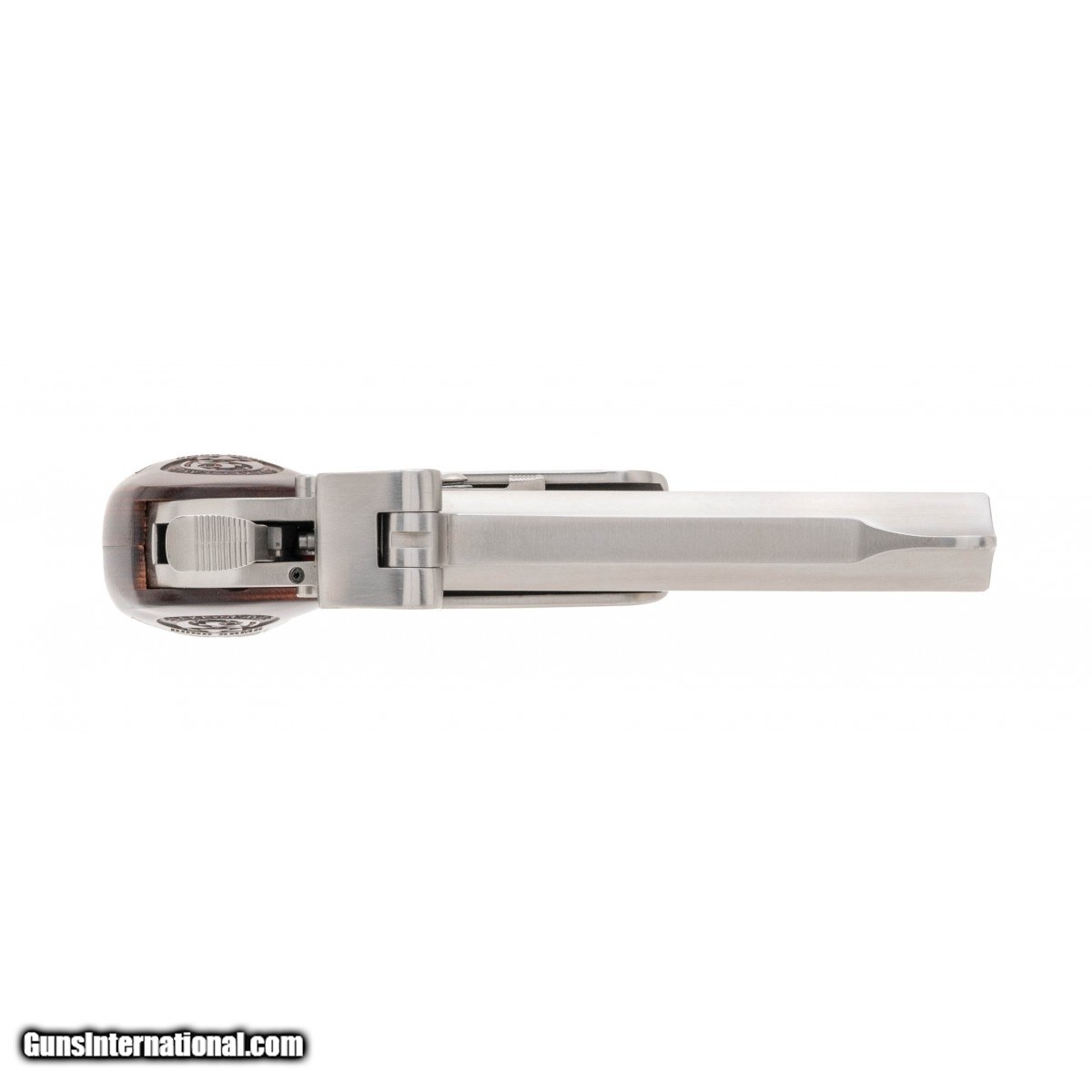 Description: " SN: 92329. Modern production, .45 Long colt and .410 Bore with 4.25"" barrels. Stainless derringer pistol with over under barrels. can chamber 3"" .410 shells. Overall excellent condition. SOLD |