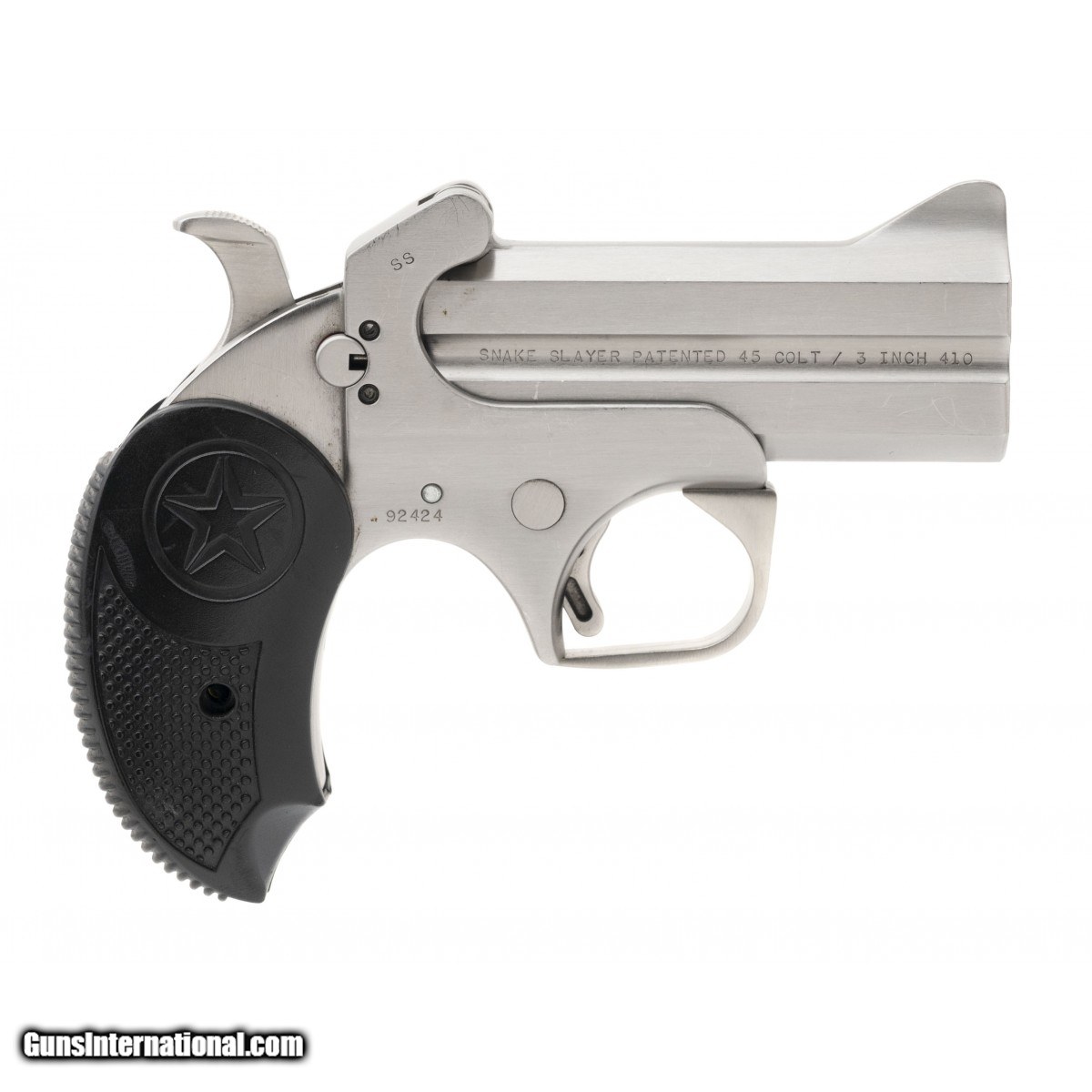 SN: 92424. Modern production, .45LC/.410 Bore with 3.5"" barrels. Bore is excellent. Stainless double barrel derringer with rubber grips. Overall excellent condition. Comes with leather IWB holster.