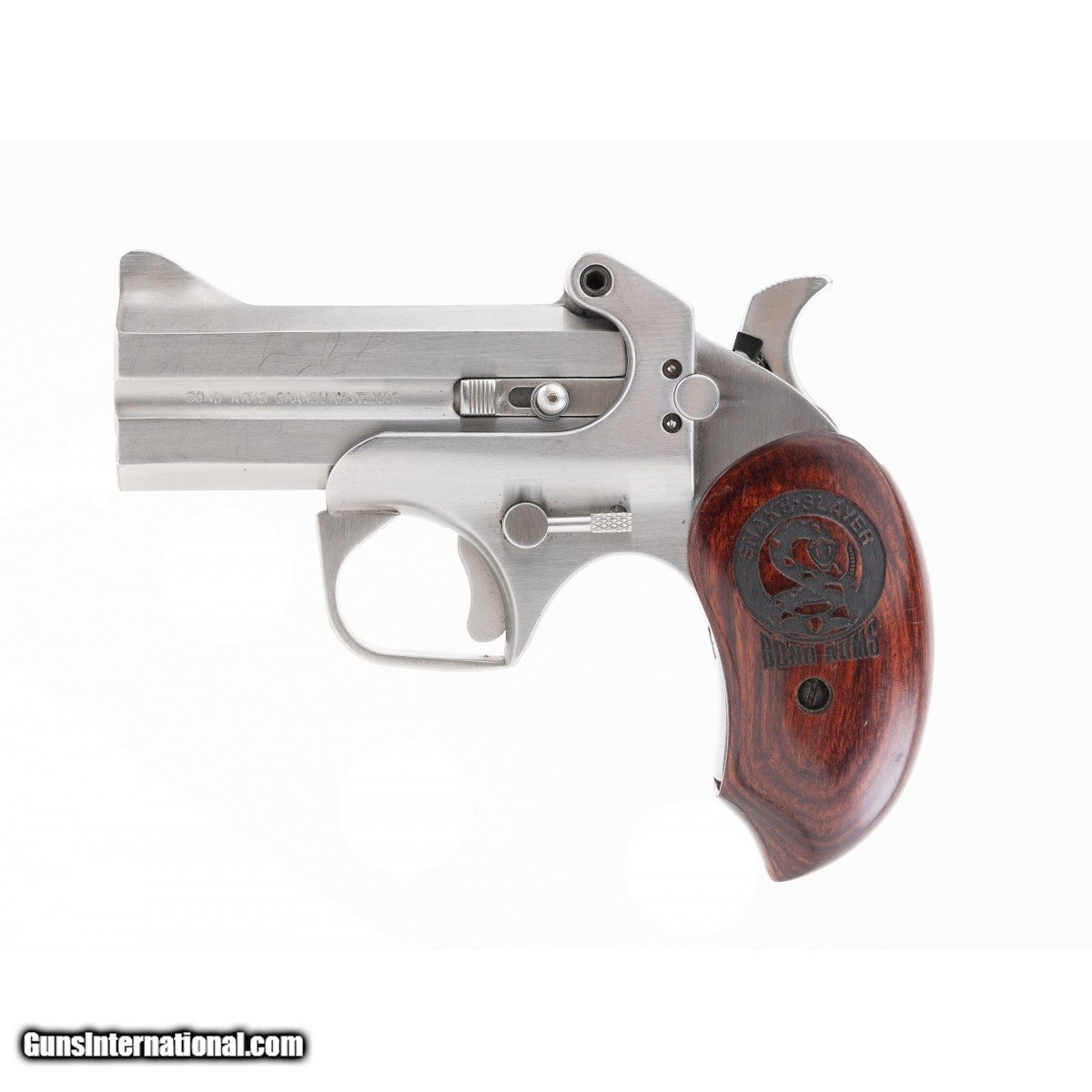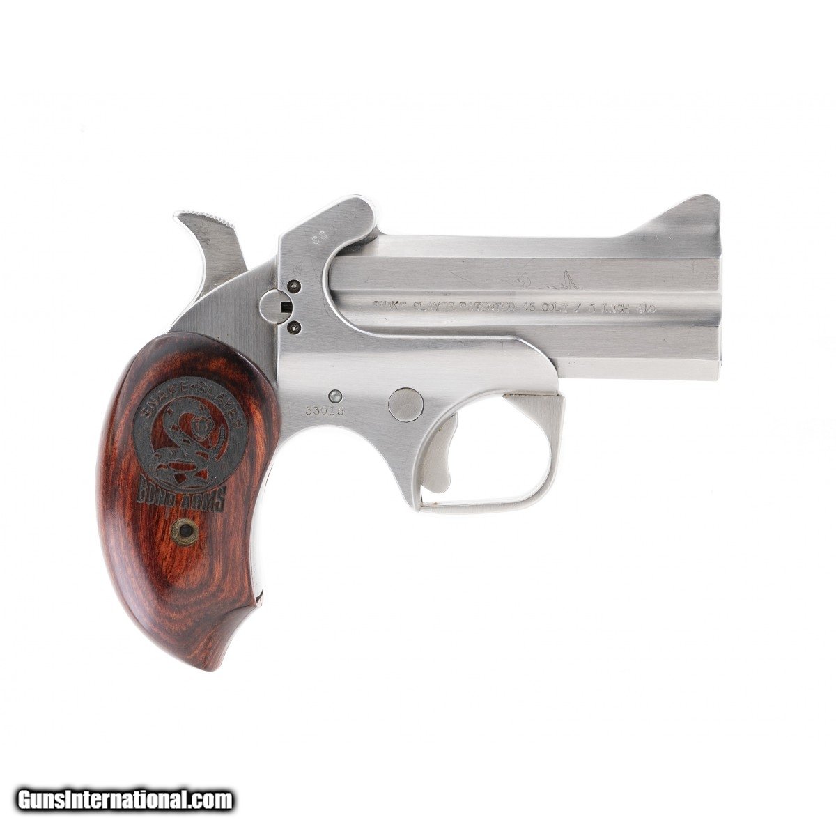 Description: " Over/under derringer with stainless finish and 3.5"" barrel. Will shoot 3"" 410 gauge shells. Good condition with some carry wear. SOLD |