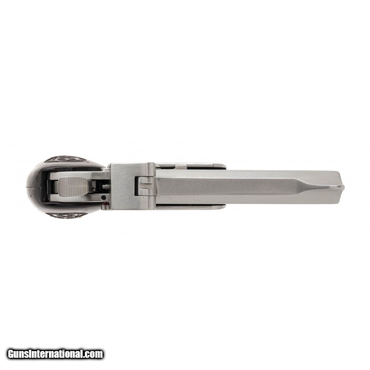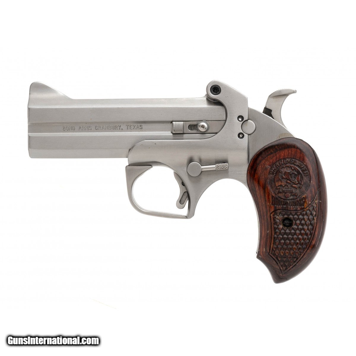 Description: " SN: 124732. Modern production, .45LC/.410 Bore/.45ACP with 4.5"" barrels. Bore is excellent. Stainless double barrel derringer. Finish and grips are in excellent. Overall condition is excellent. Comes with extra .45ACP Barrel. SOLD |