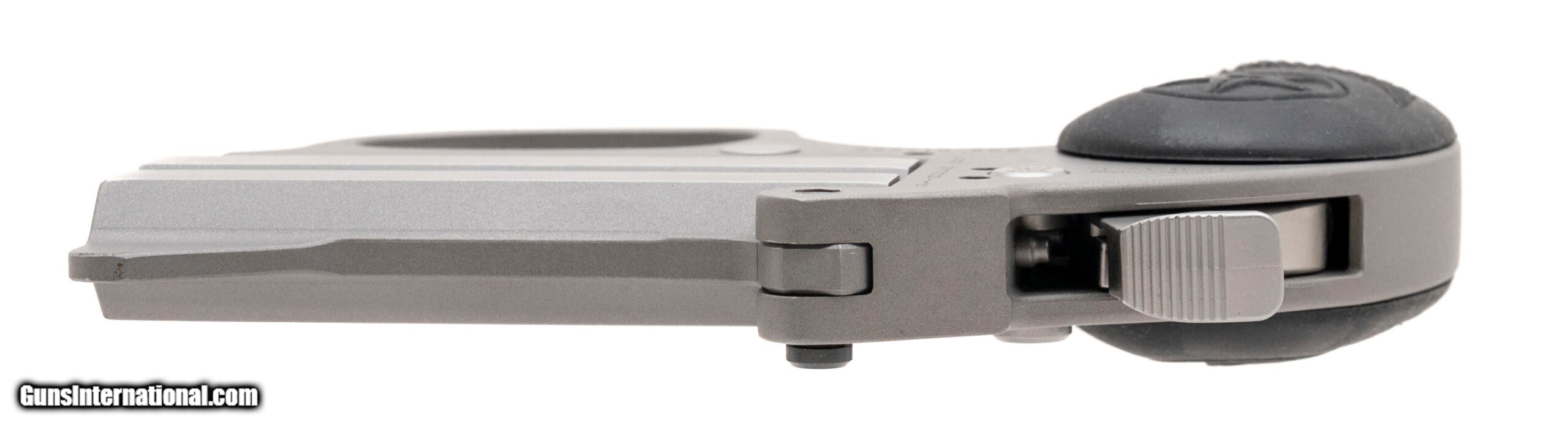 Description: "SN: SSS-017666. Modern production, .380 ACP with 3"" barrels. Bores are excellent. Texas made derringer pistol with matte stainless steel frame, stainless barrels, and black checkered rubber grips. Includes additional black plastic grips, and original box. Overall condition is excellent. SOLD |