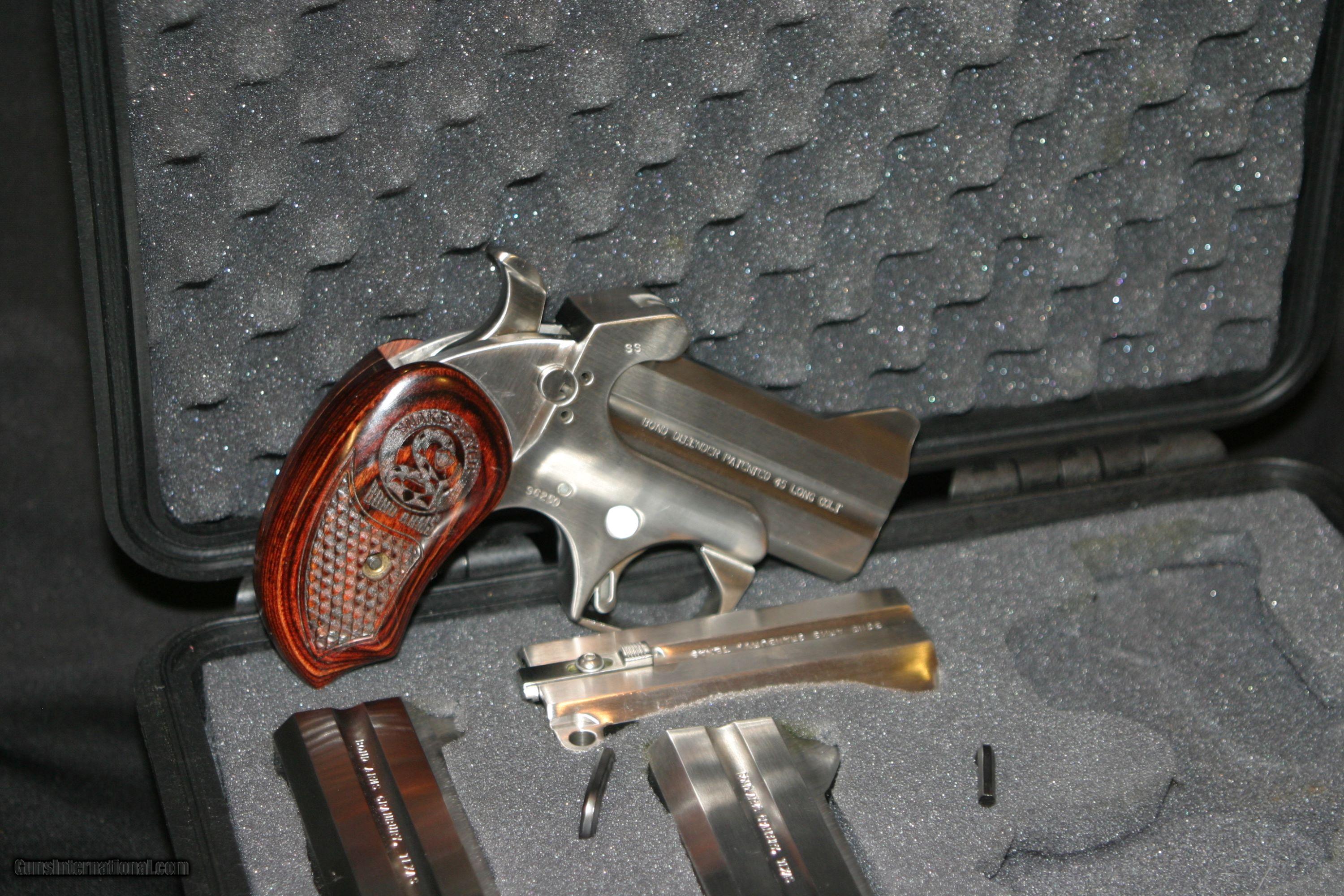 Description: THIS IS A VERY UNIQUE SET UP, FOUR BARRELS, CASED. COME WITH 3"- .45LC, 3"- .45ACP , 3" .45LC,& 410 AND 4.5" .45LC SOLD |