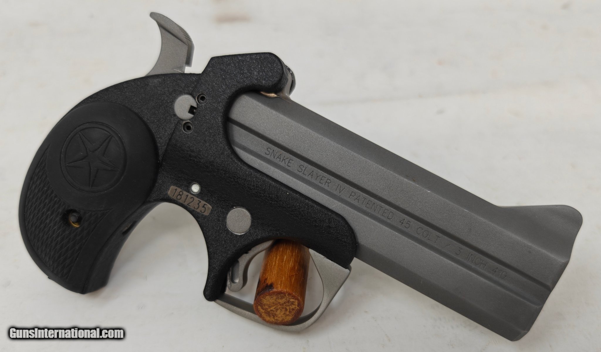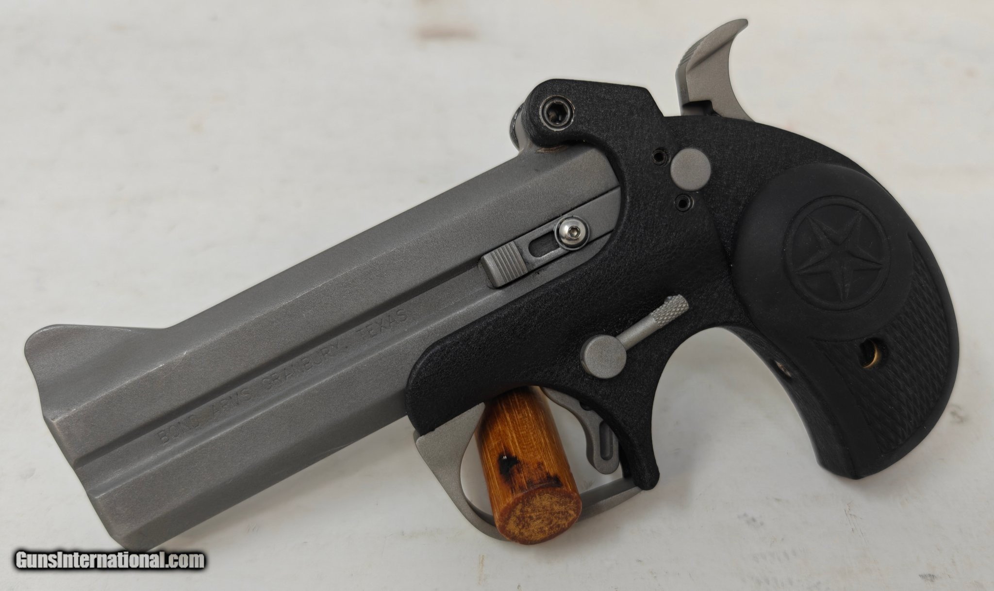 Description: Guns Listing ID: 573349 Bond Arms Back up with 3 barrels, 2 grips, and leather holster. Bond Defender leather holster is long enough to accommodate the 6\" barrel. 6\" polished long bond defender 10mm barrel, 4.5\" matte snake slayer IV barrel chambered in 45 colt and 4\" 410, and 2.5\" matte backup barrel in 45acp SOLD Manufacturer: BOND ARMS Model: BACKUP Caliber Info: .45 ACP Condition: Used - Non-Certified Barrels: 2.5" BARREL Action: STRIKER FIRED Weight: 1.2 lbs. |