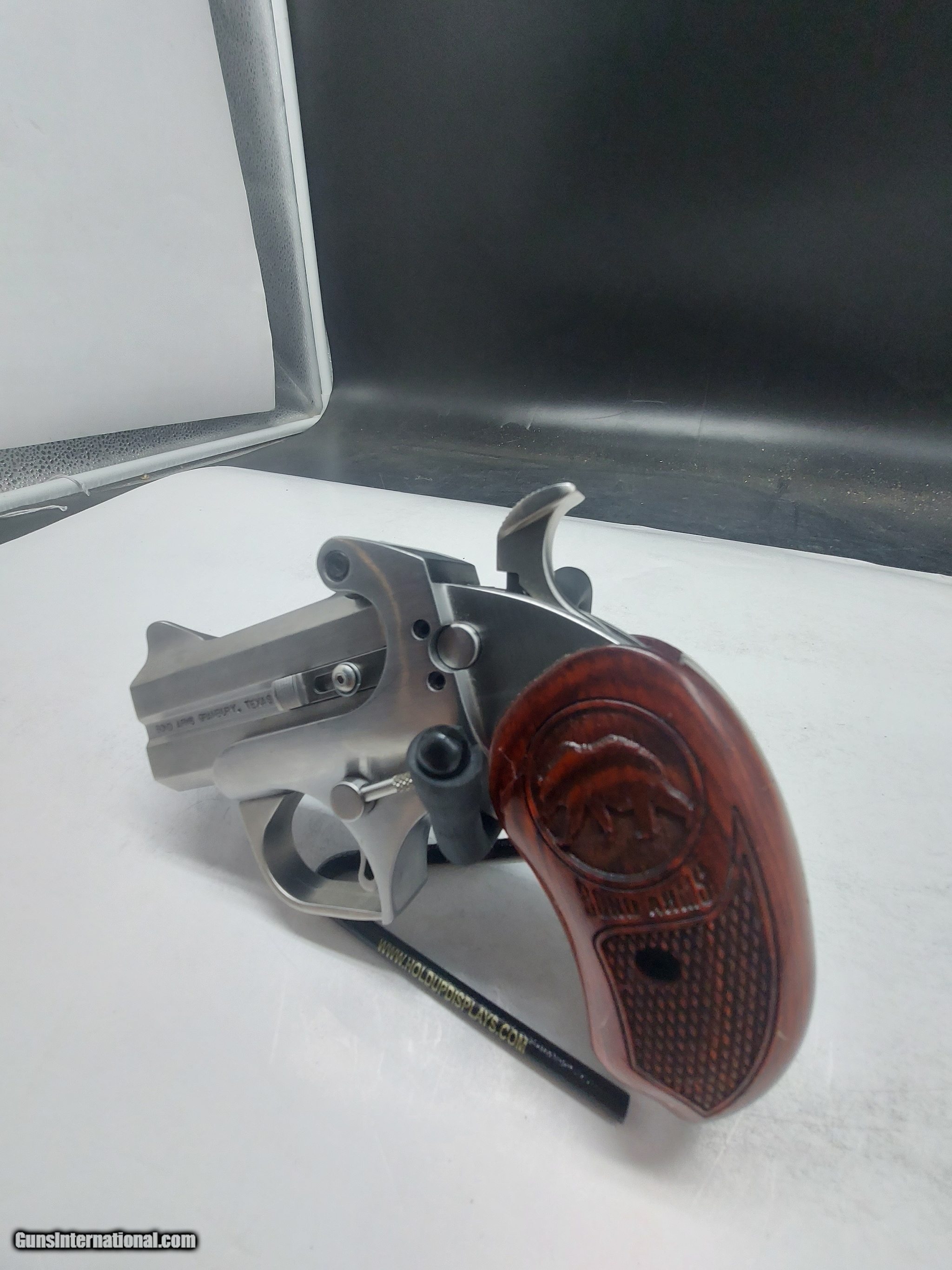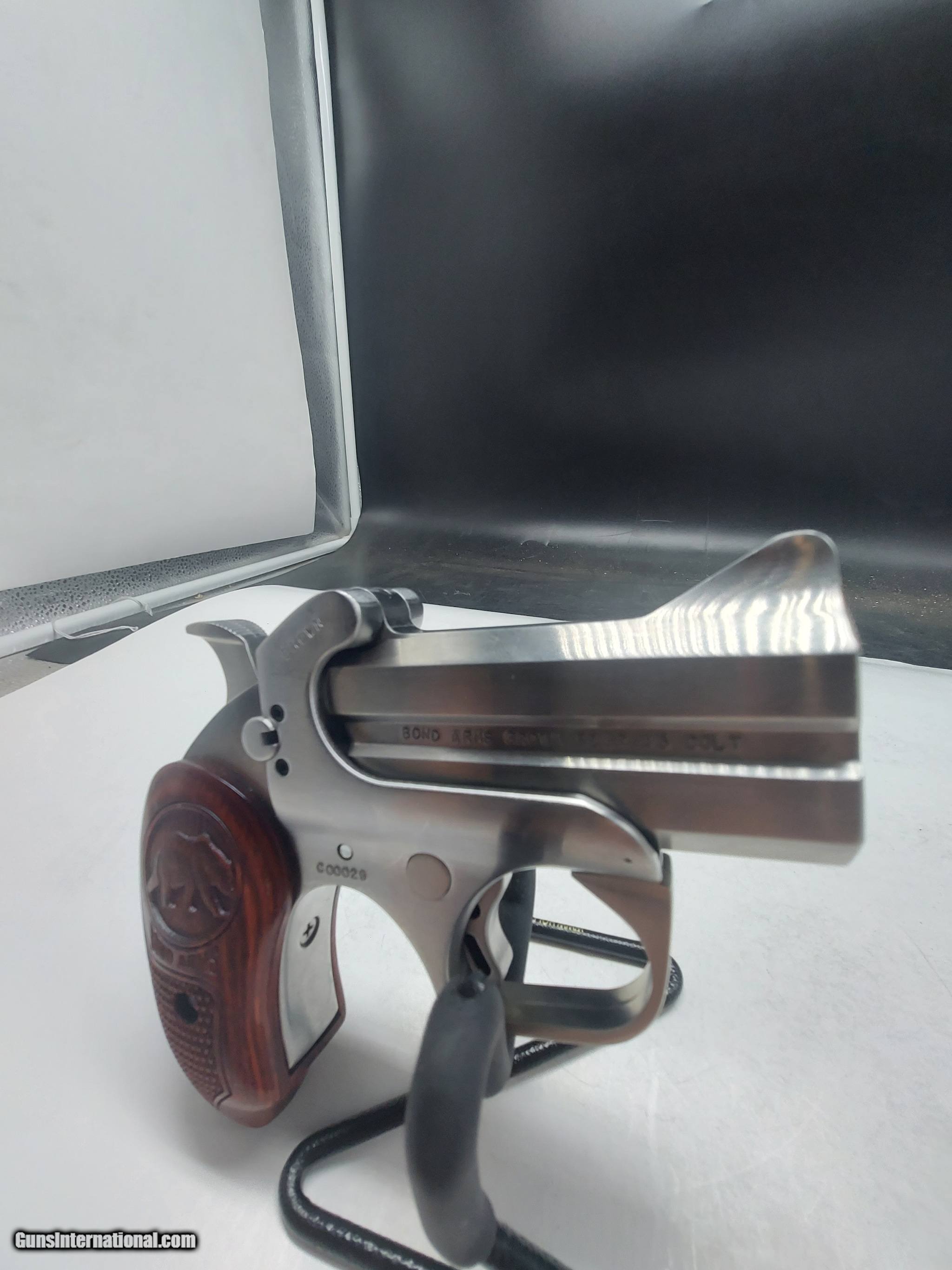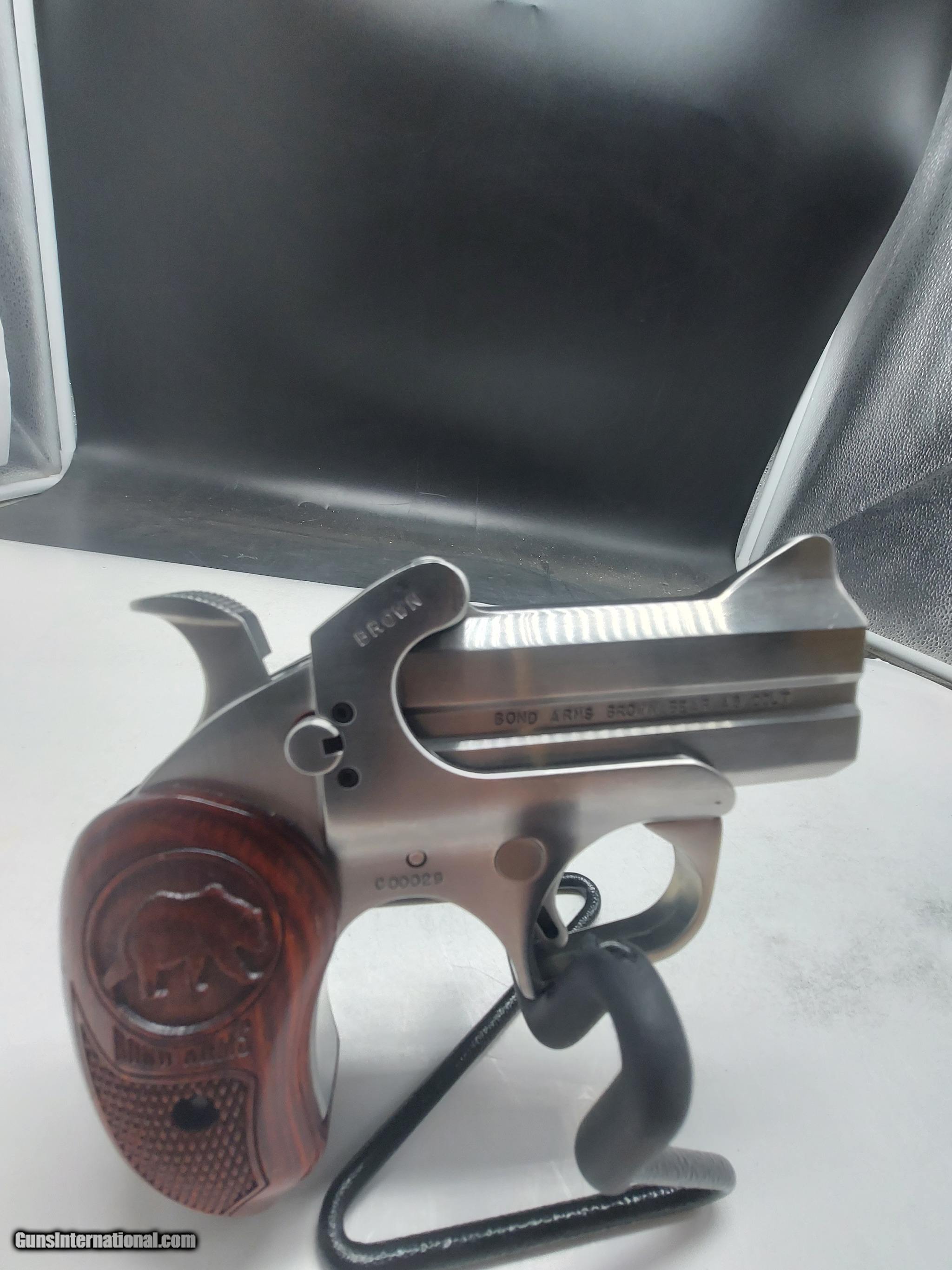 Description: Guns Listing ID: 710709 BOND ARMS BROWN BEAR .45 COLT DERRINGER IN EXCELLENT CONDITION SOLD AS PICTURED SOLD Manufacturer: BOND ARMS Model: Brown Bear Caliber Info: .45 LC Condition: Used - Non-Certified Barrels: 3 BARREL Finish: STAINLESS |