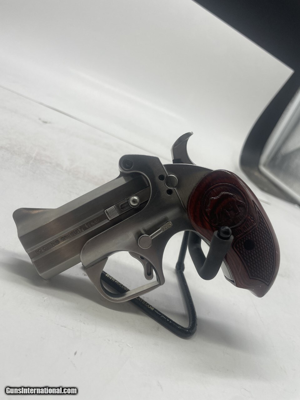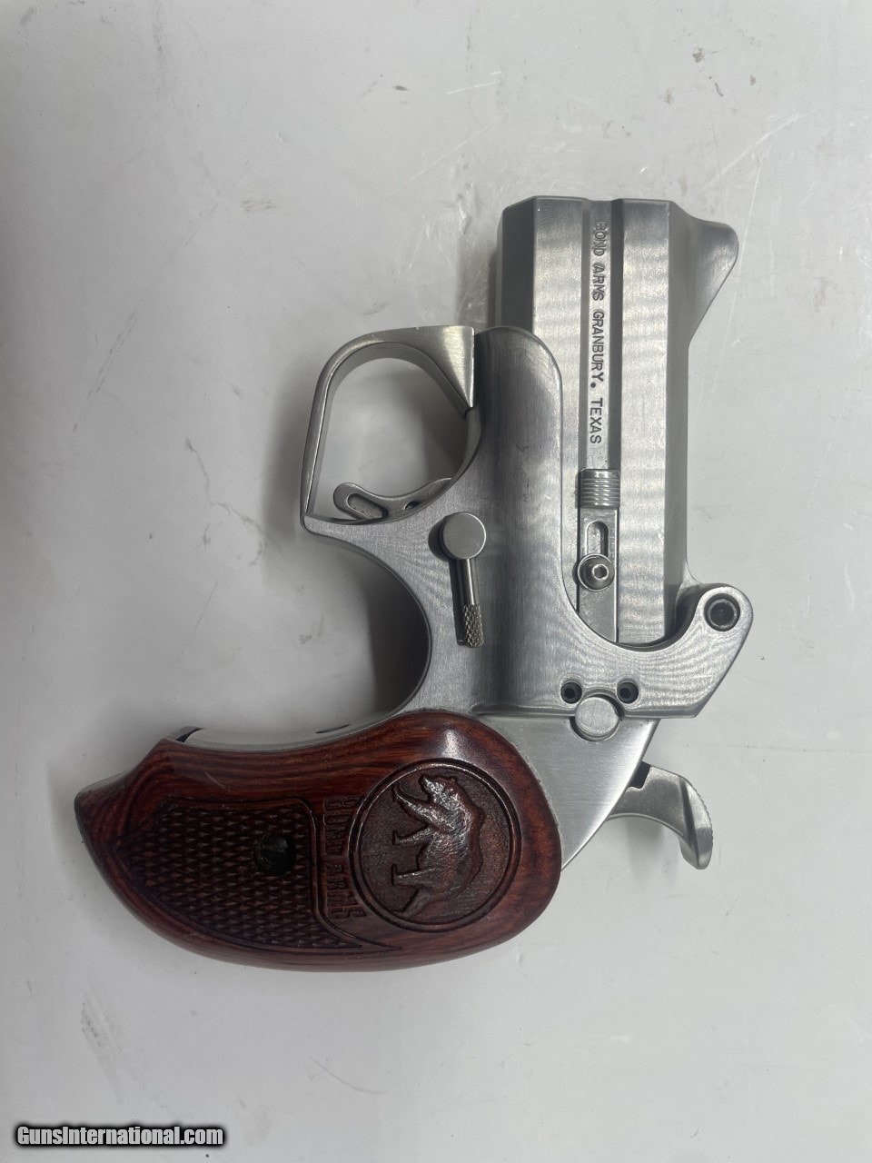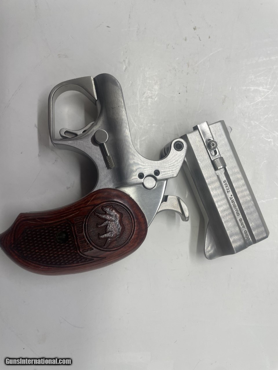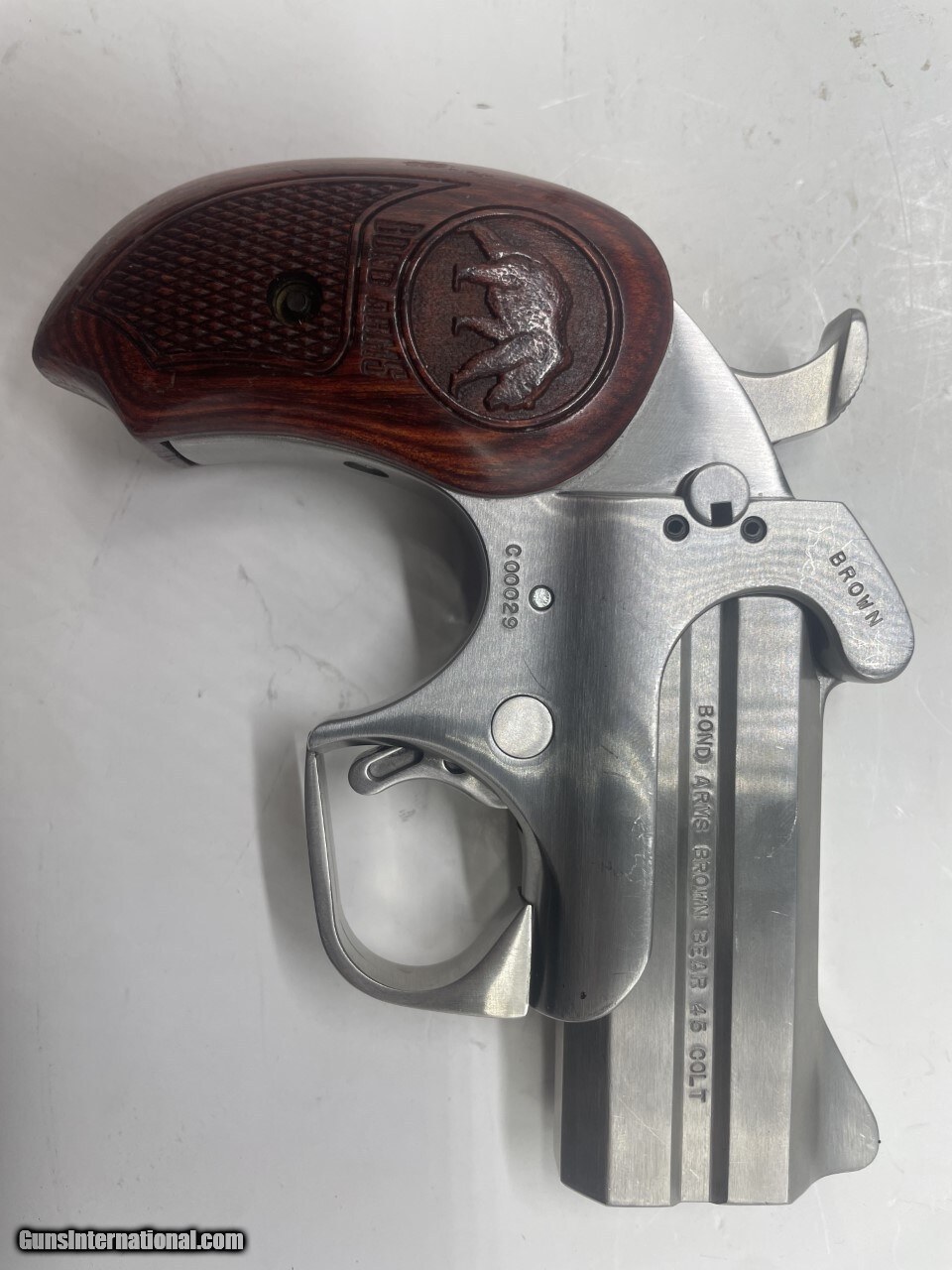 Description: Guns Listing ID: 772951 Up for sale today is this wonderful Bond Arms Brown Bear. This firearm is in excellent condition. Please refer to photos for additional details. SOLD Manufacturer: BOND ARMS Model: Brown Bear Caliber Info: .45 LC Condition: Used - Non-Certified Barrels: 3 BARREL Finish: STAINLESS WITH WOOD STOCK |