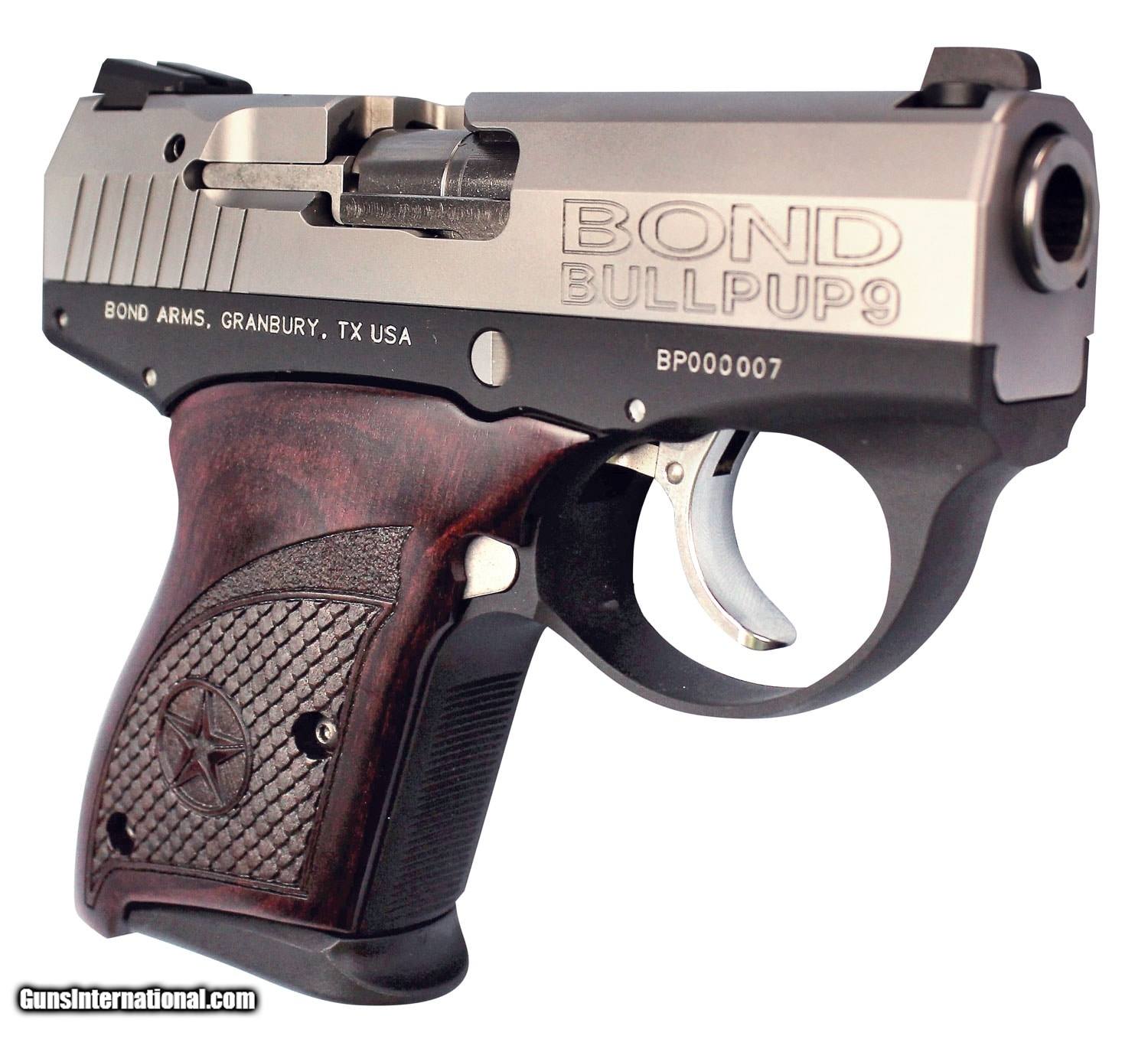 Description: Guns Listing ID: 260080 The only bullpup style handgun on the market, this Bond Arms BullPup 9 is a limited production semi-auto handgun chambered in 9mm. It is ultra-compact, lightweight, and well-suited for concealed carry. This pistol features steel construction and checkered rosewood grips, as well as 3-dot sights that are drift adjustable. SOLD Manufacturer: BOND ARMS Model: BULLPUP9 Caliber Info: 9MM LUGER (9X19 PARA) Condition: new Barrels: 3.3 BARREL Finish: BLACK |