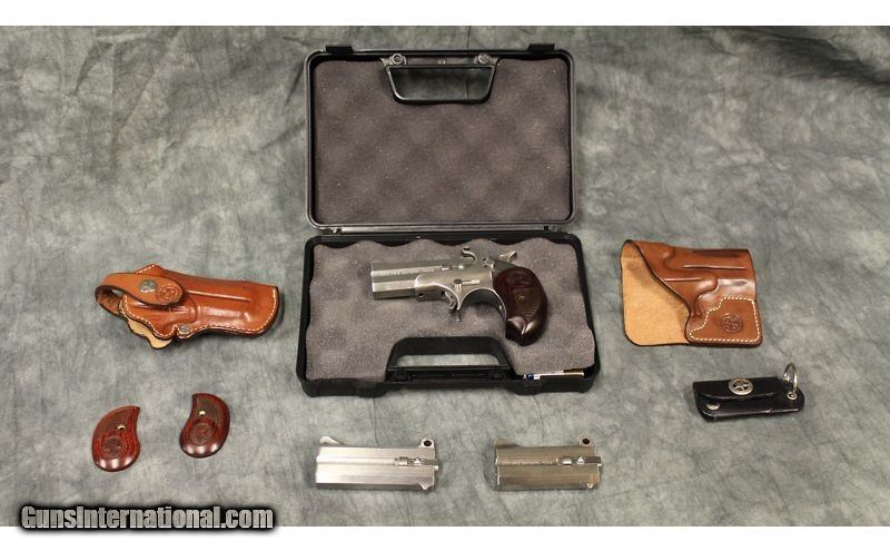 Description: For your consideration, a Bond Arms Century 2000 chambered in 45LC/410 Gauge. Included are the original box, a 22WMR barrel, a 357 MAG/38 SPL barrel, two leather holsters and the disassembly tool. .45 Colt/.410 Bore SOLD Chambers: 3 Metal Condition: Very Good Wood Condition: Excellent Bore Condition: Excellent Barrels: Three Triggers: Single Item Location: Hampton, VA |