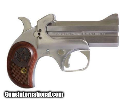Description: Guns Listing ID: 38931 The Bond Arms Century 2000 is a derringer chambered in 45LC410 bore or in 357 Mag38 Special. Both the frame and barrels are made from stainless steel while the grips are engraved rosewood. The smaller handle makes this 3.5 barreled handgun an excellent backup weapon for concealed carry purposes. A blade front sight and fixed rear sight adorn the barrels which also feature automatic extractors. Details Action SA - Caliber .357 Mag .38 Spl - Capacity 2rd - Barrel 3.5 Stainless Steel Satin - Sights Fixed Rear Blade Front - Frame Stainless Steel Satin - Grips Rosewood - Length 5.5 - Weight 21 oz. - Interchangeable barrels - Automatic extractor (excludes 9mm .40 SW 10mm and .45 ACP) - Rebounding hammer - Retracting firing pins - Crossbolt safety - Spring-loaded cammed locking lever (for a tighter barrelframe fit and rapid loading and unloading) - Stainless steel with satin polish finish - Trigger guard SOLD Manufacturer: BOND ARMS Model: CENTURY 2000 Caliber Info: .357 MAG Condition: new Barrels: 3.5 BARREL |