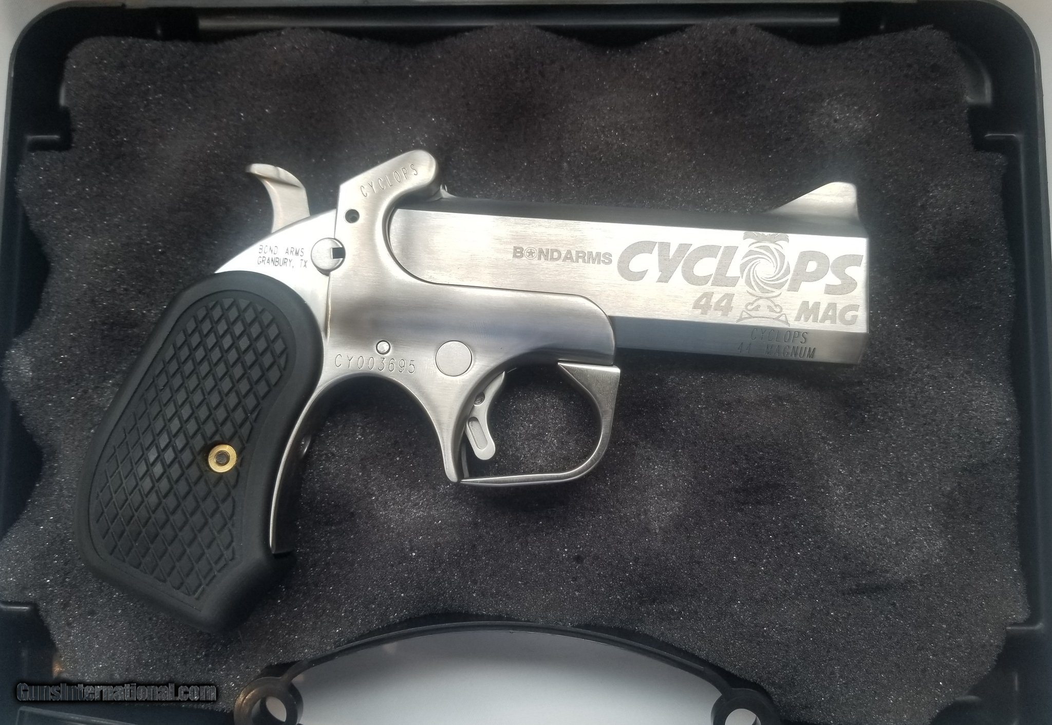 Description: Guns Listing ID: 1281238 Bond Arms Cyclops .44MAG with Holster. Original Box SOLD Manufacturer: BOND ARMS Model: CYCLOPS Caliber Info: .44 MAGNUM Condition: Used - Non-Certified Barrels: 4.25 BARREL Finish: STAINLESS |