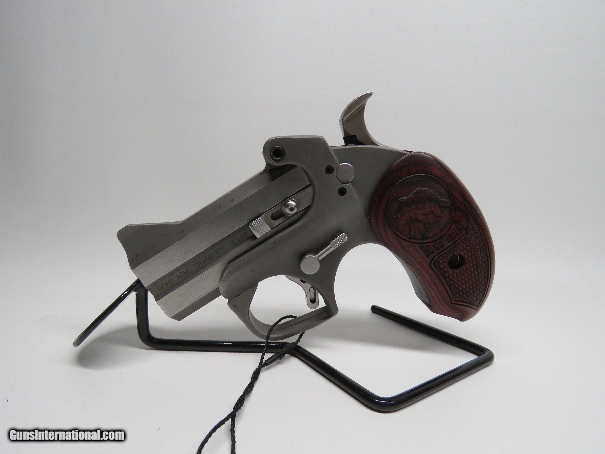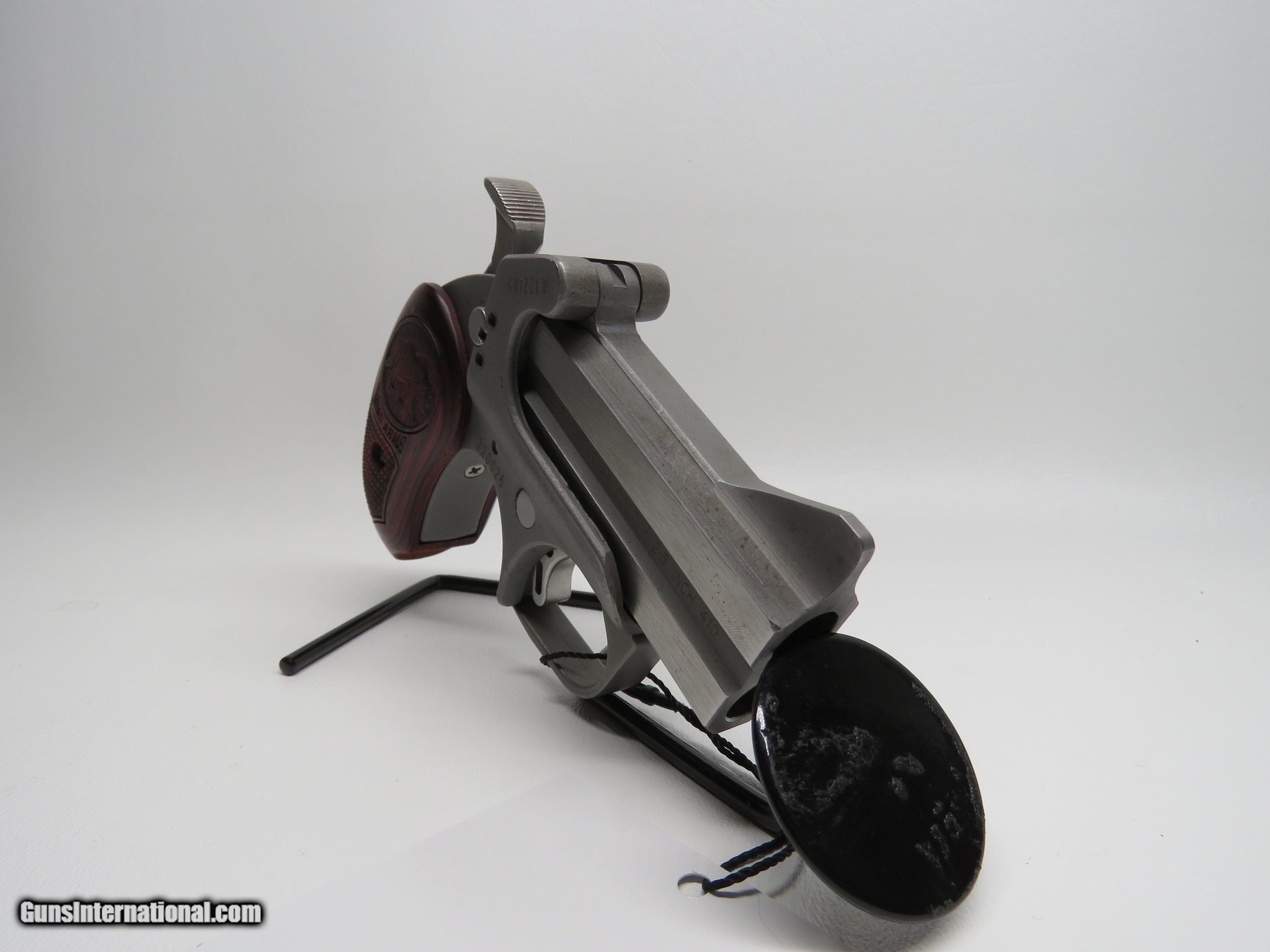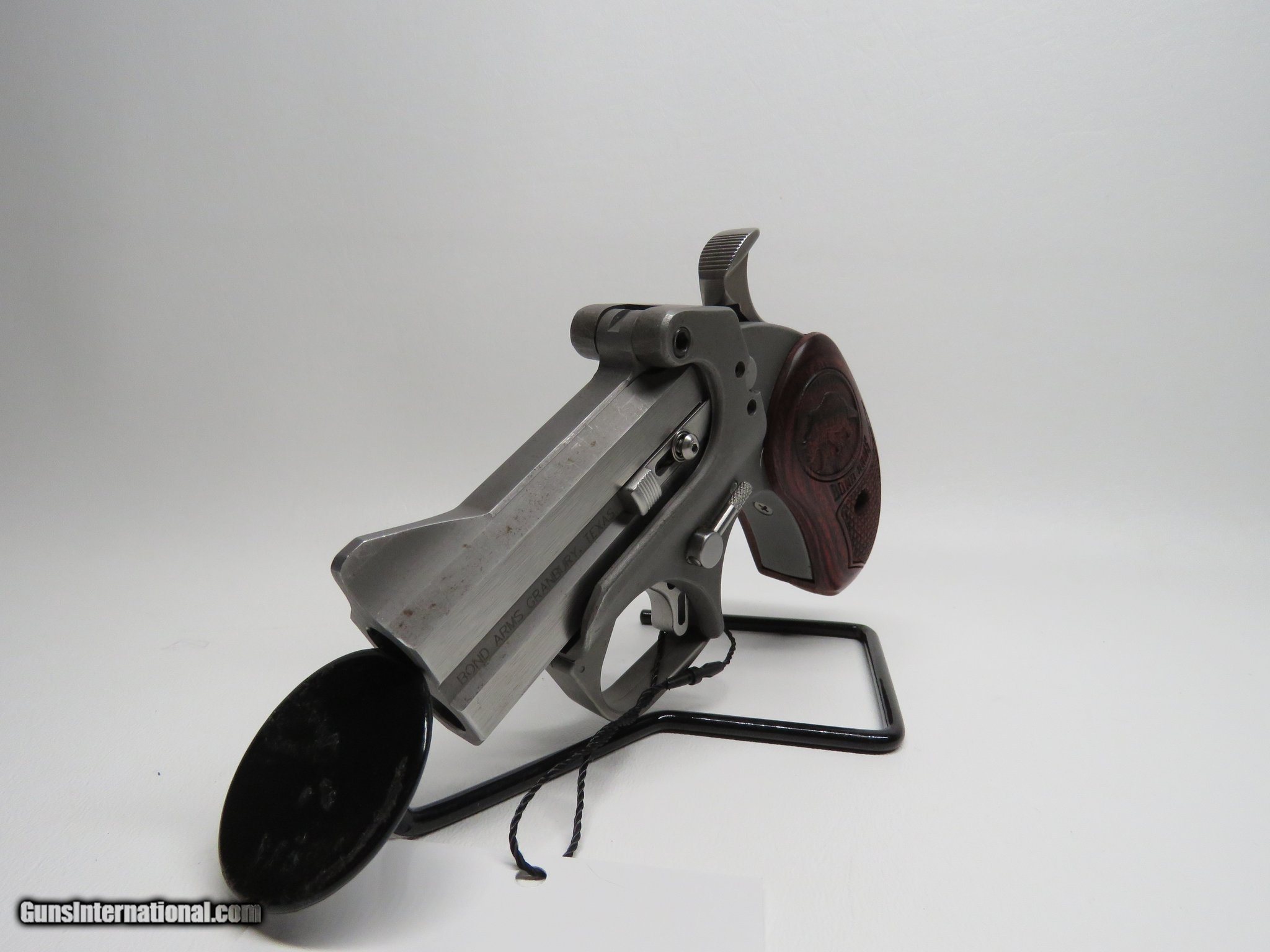 Description: Guns Listing ID: 481567 It does come with the original box SOLD Manufacturer: BOND ARMS Model: GRIZZLY Condition: Used - Non-Certified Barrels: 3 Gauge Info: .45 LC/.410 GA Finish: stainless |