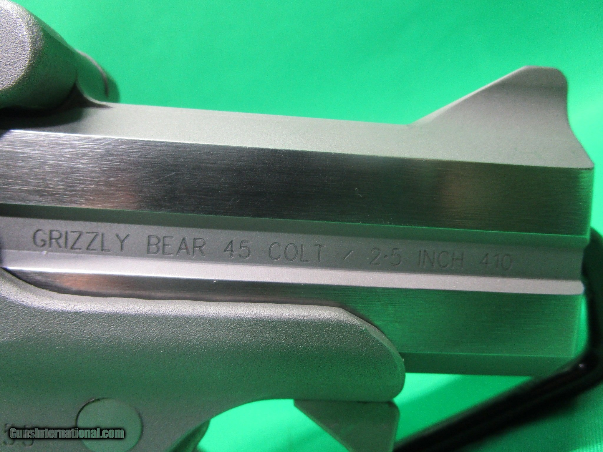 Description: Guns Listing ID: 476193 We have a used Bond Arms Grizzly Bear derringer for sale. This is chambered in 45 LC and 410 with a 2.5\" barrel. It comes as shown in pictures. This is in Very Good Used Condition. Overall we would grade at approx 98%. Check out the pictures and feel free to call or email with any questions. SOLD Manufacturer: BOND ARMS Model: GRIZZLY BEAR Caliber Info: 45 LC / 410 GA Condition: Used - Non-Certified Barrels: 2.5 BARREL Finish: STAINLESS |