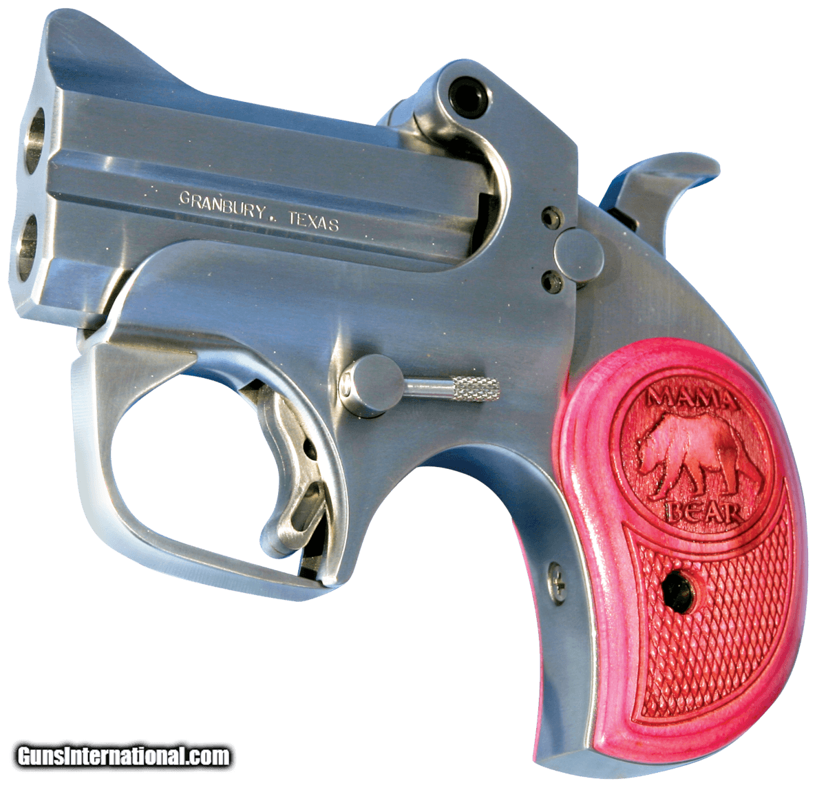 Description: Guns Listing ID: 407686 Sized just right, the Mama Bear is the ideal choice for protection when your maternal instincts kick in. Its compact 2.5\" barrel is chambered for 9MM. - CALIBER .357 MAG/.38 SPL - BARREL 2.5\" Stainless - GRIPS Pink Wood SOLD Manufacturer: BOND ARMS Model: MAMA BEAR Caliber Info: .38 SPECIAL/.357 MAGNUM Condition: new Barrels: 2.5 BARREL Finish: SATIN STAINLESS |