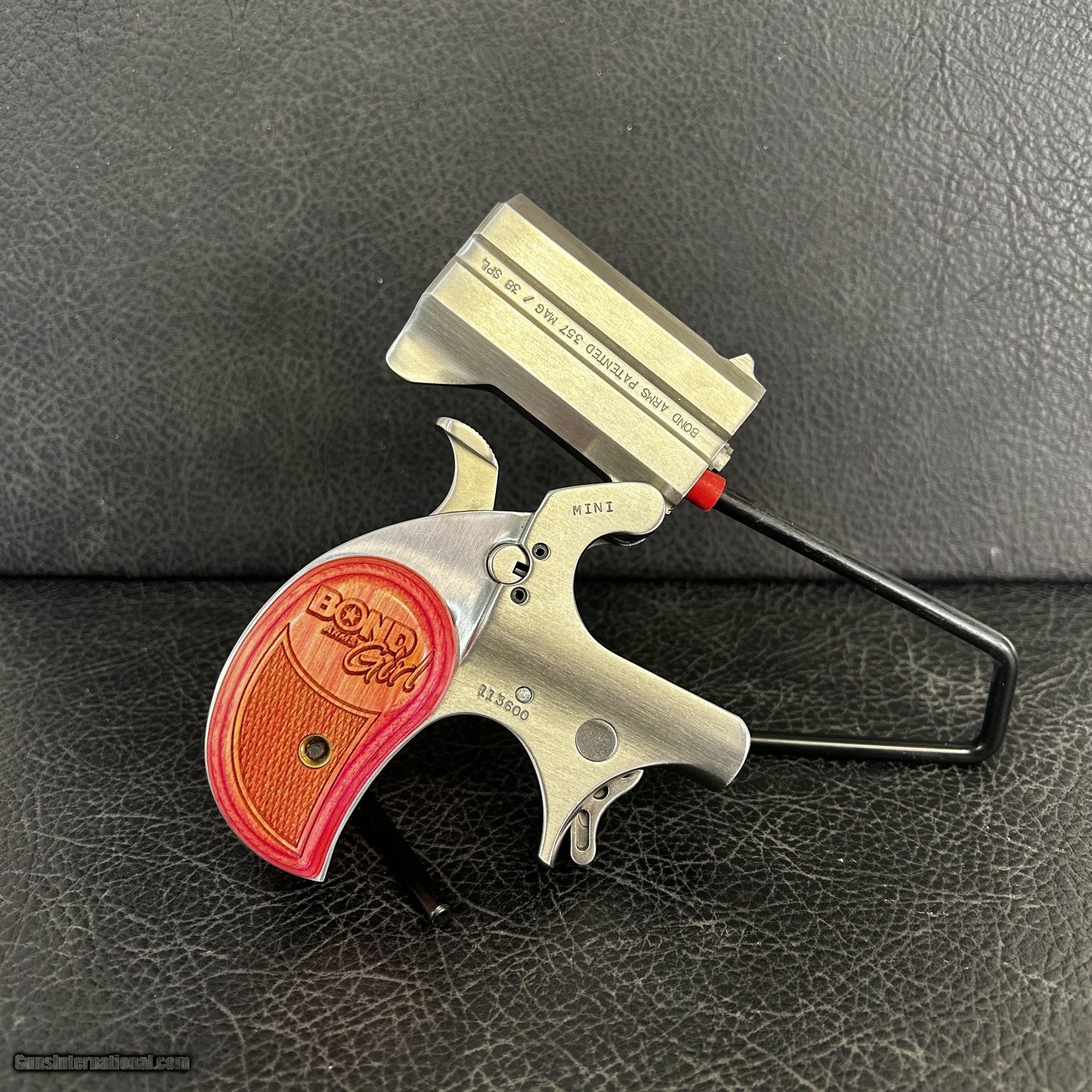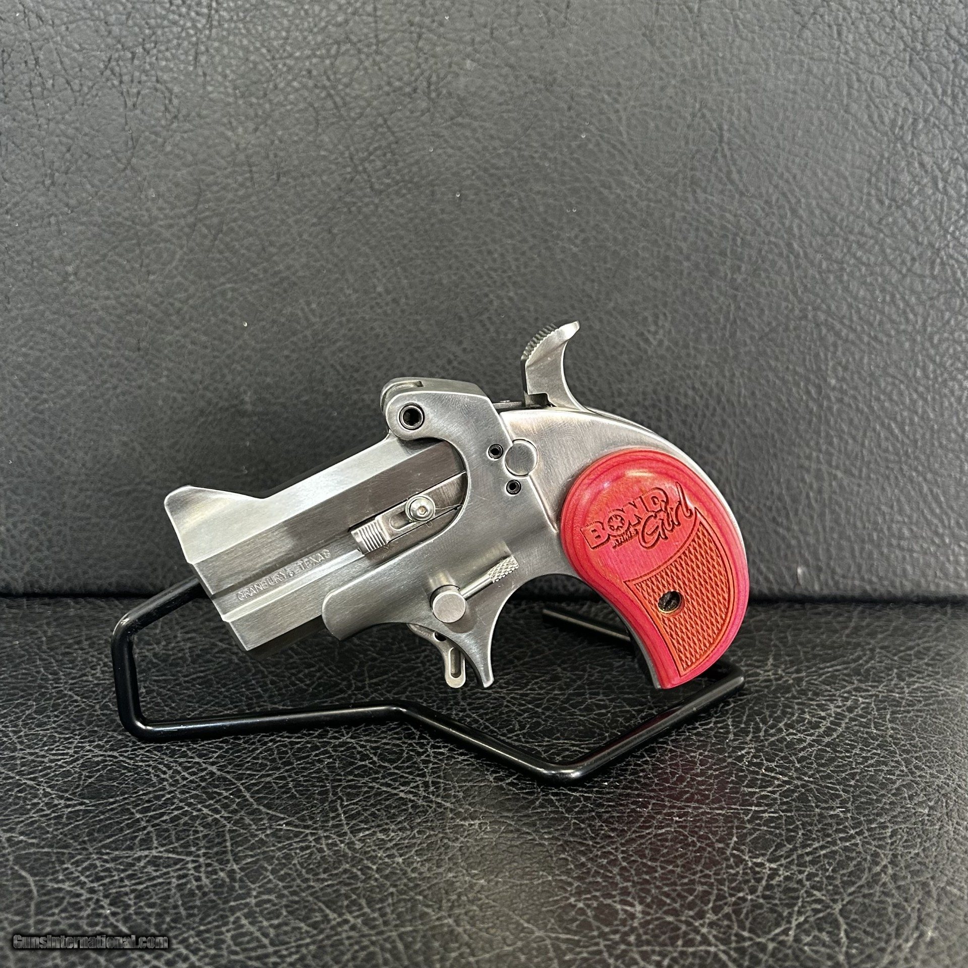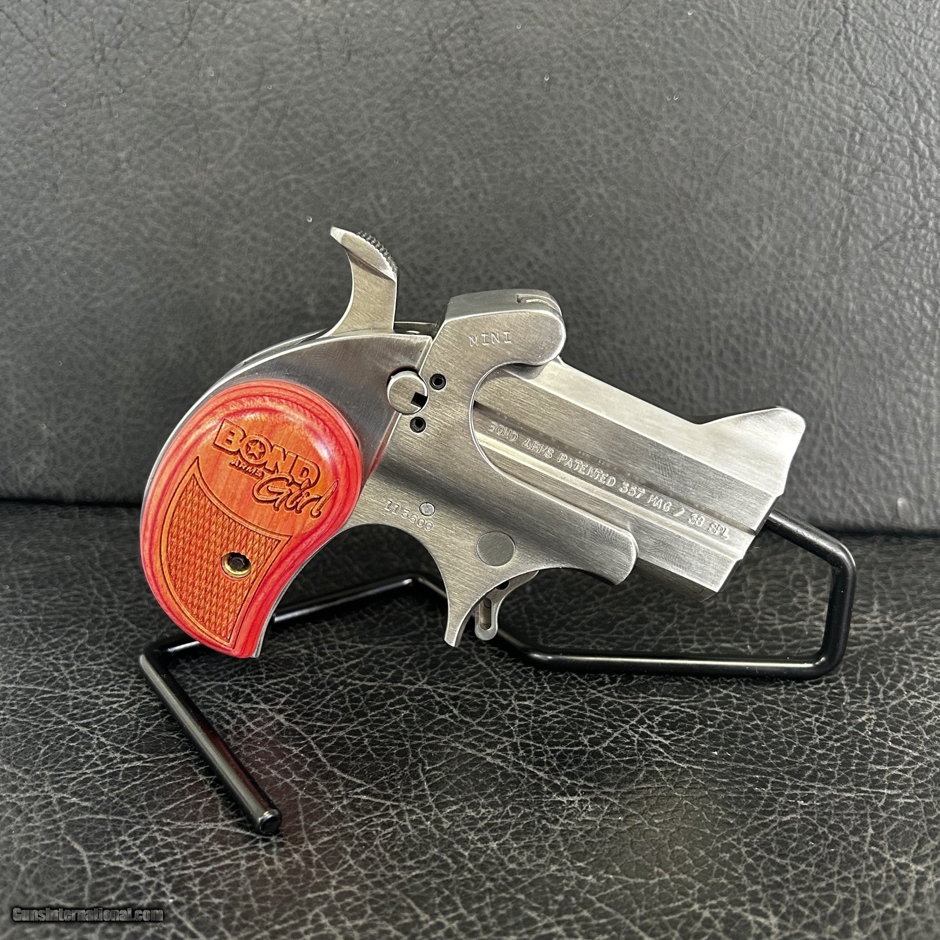 Description: Guns Listing ID: 498903 In good condition with no cosmetic damage. Will come in a hard case. The Bond Arms Girl Mini is a compact and stylish break-action pistol that combines powerful performance with an eye-catching design. Chambered in .357 Magnum and .38 Special. SOLD Manufacturer: BOND ARMS Model: MINI GIRL Caliber Info: .357 MAG Condition: Used - Non-Certified Barrels: 2.5 Action: OVER/UNDER |